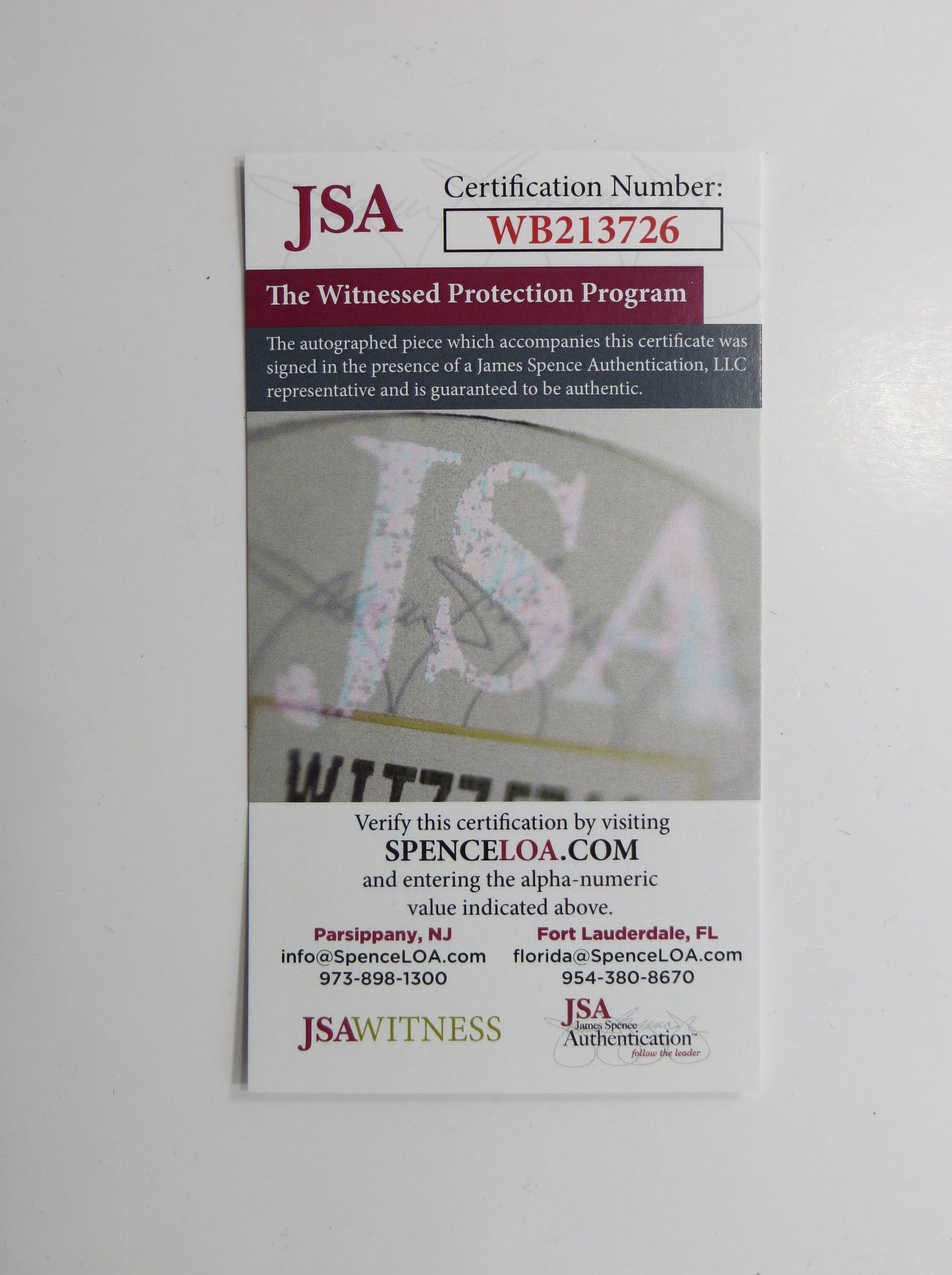 This item comes with a matching numbered sticker to a Certificate of Authenticity card from James Spence Authentication (JSA).