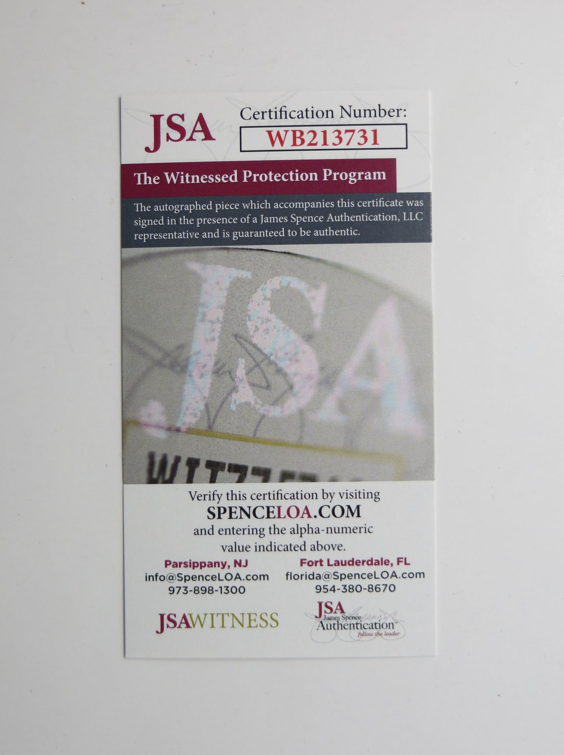 This item comes with a matching numbered sticker to a Certificate of Authenticity card from James Spence Authentication (JSA).