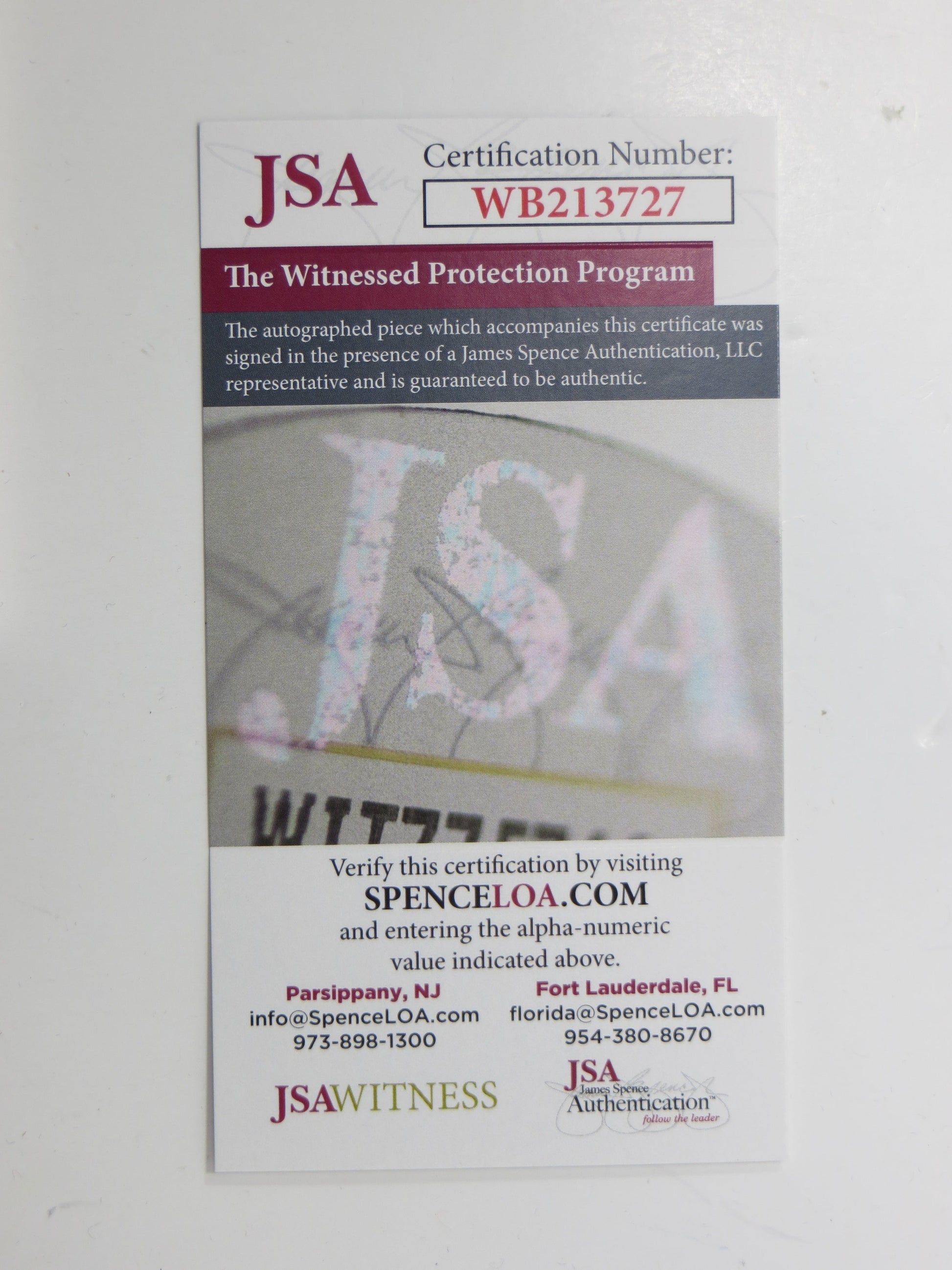 This item comes with a matching numbered sticker to a Certificate of Authenticity card from James Spence Authentication (JSA).
