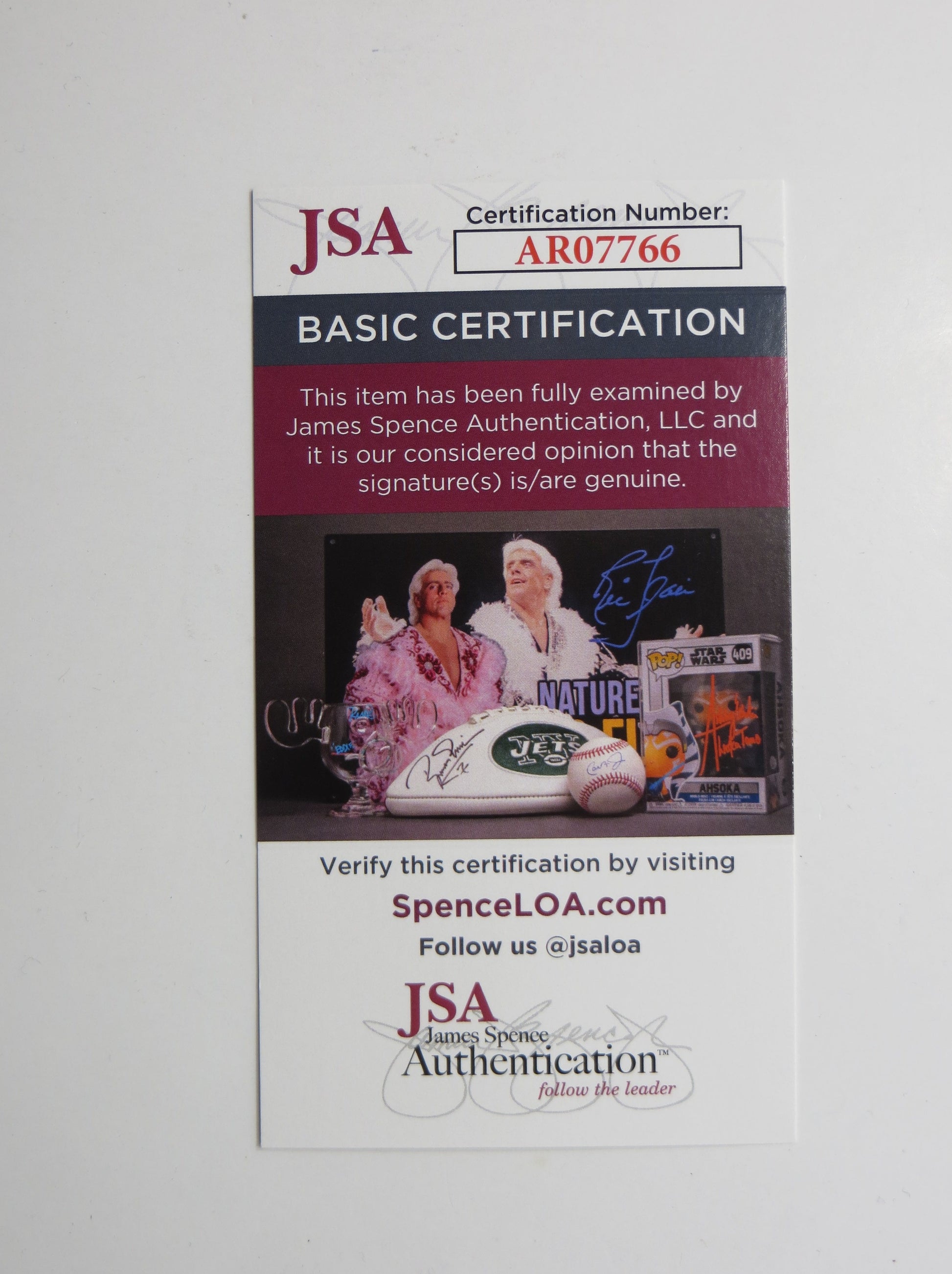 This item comes with a matching numbered sticker to a Certificate of Authenticity card from James Spence Authentication (JSA).