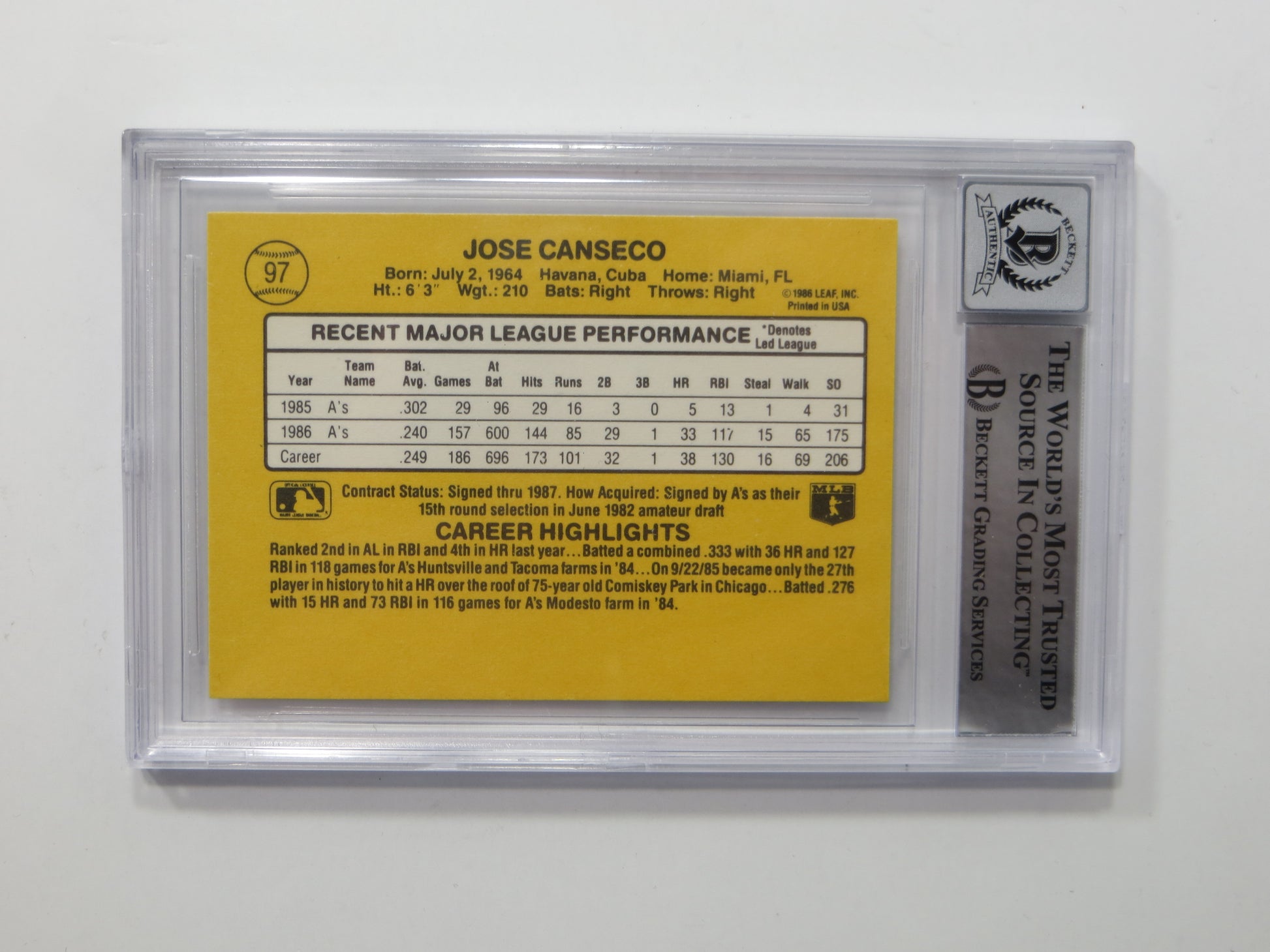 JOSE CANSECO SIGNED BGS BAS SLAB 1987 DONRUSS #39 A's Auto 10