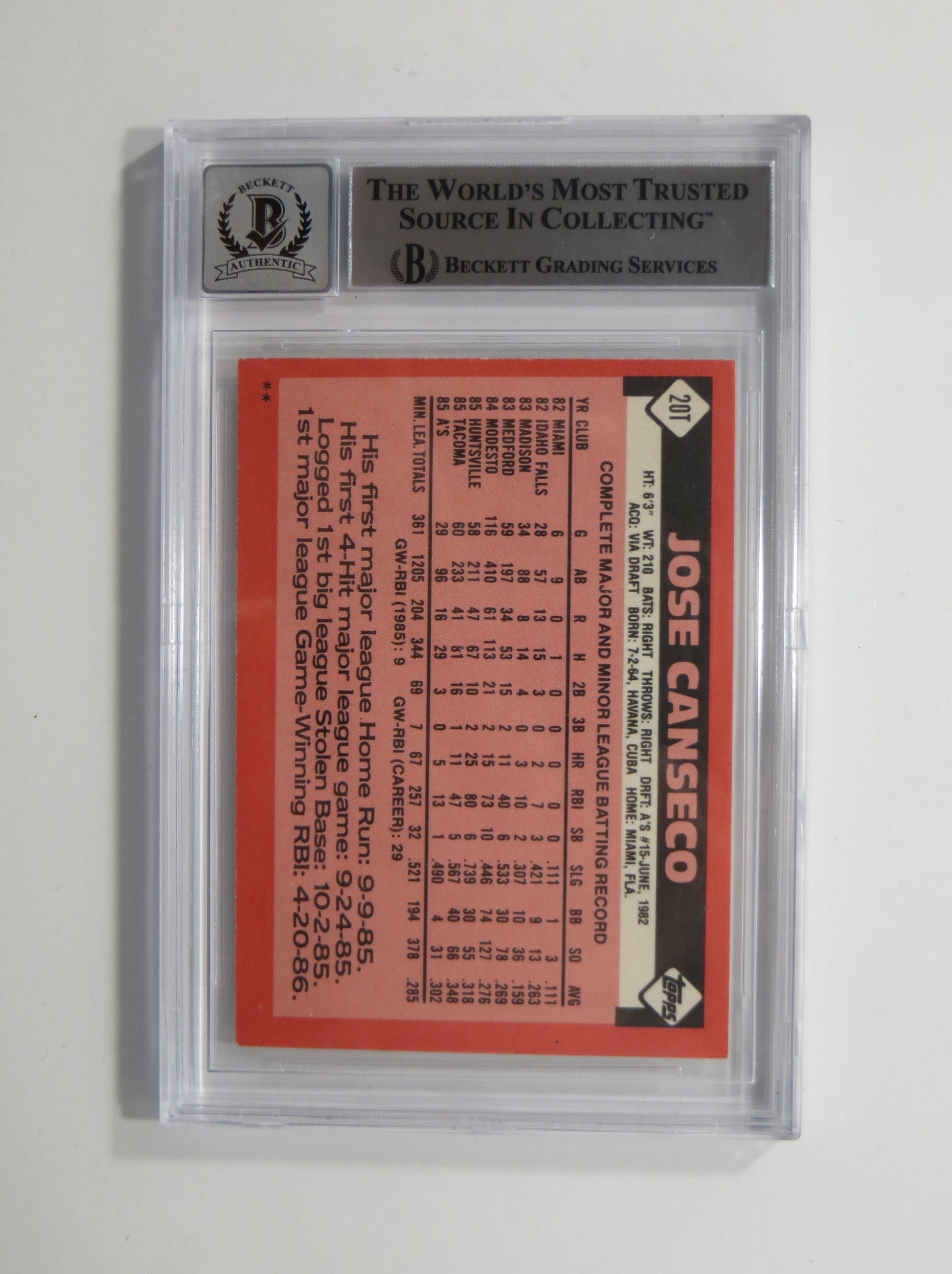 JOSE CANSECO SIGNED BGS BAS SLAB 1986 TOPPS TRADED #20T XRC A's Auto 10
