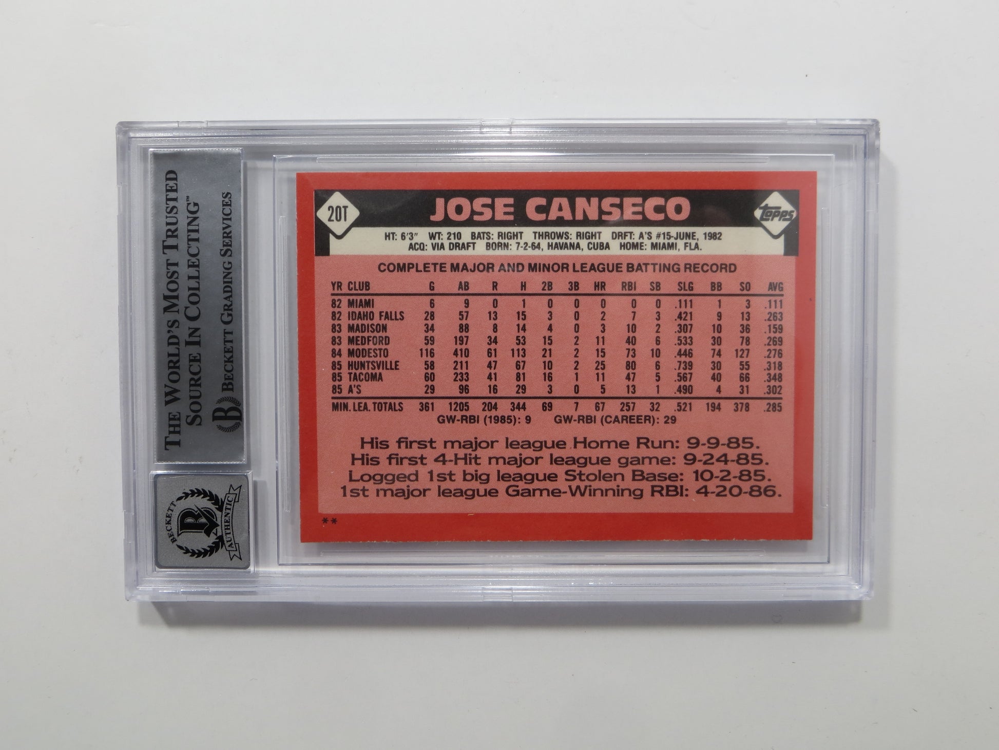 JOSE CANSECO SIGNED BGS BAS SLAB 1986 TOPPS TRADED #20T XRC A's Auto 10