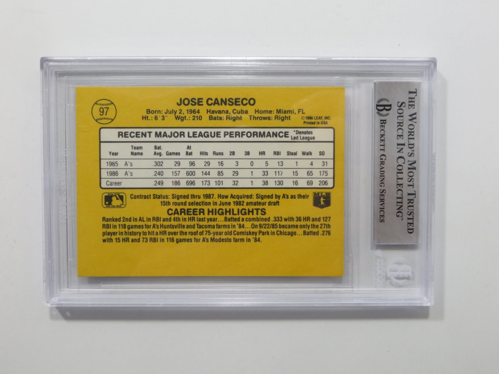 JOSE CANSECO SIGNED BGS BAS SLAB 1987 DONRUSS #39 A's Auto