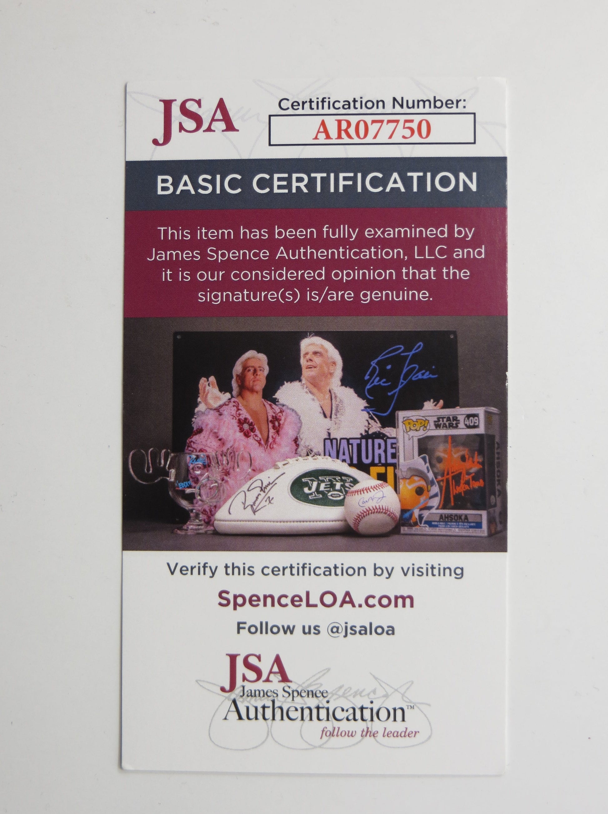This item comes with a matching numbered sticker to a Certificate of Authenticity card from James Spence Authentication (JSA).