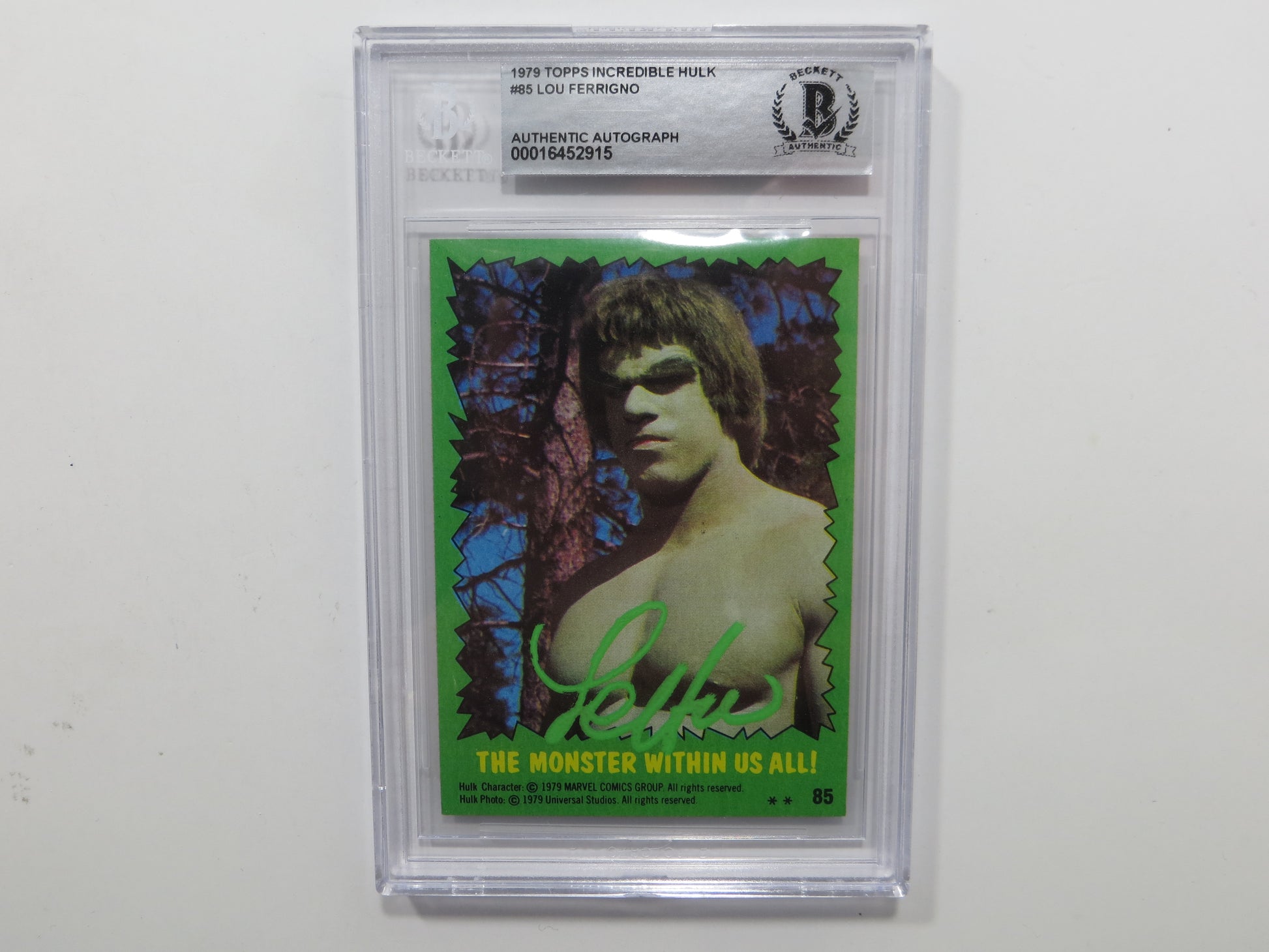 LOU FERRIGNO SIGNED 1979 TOPPS INCREDIBLE HULK #85 BGS SLAB