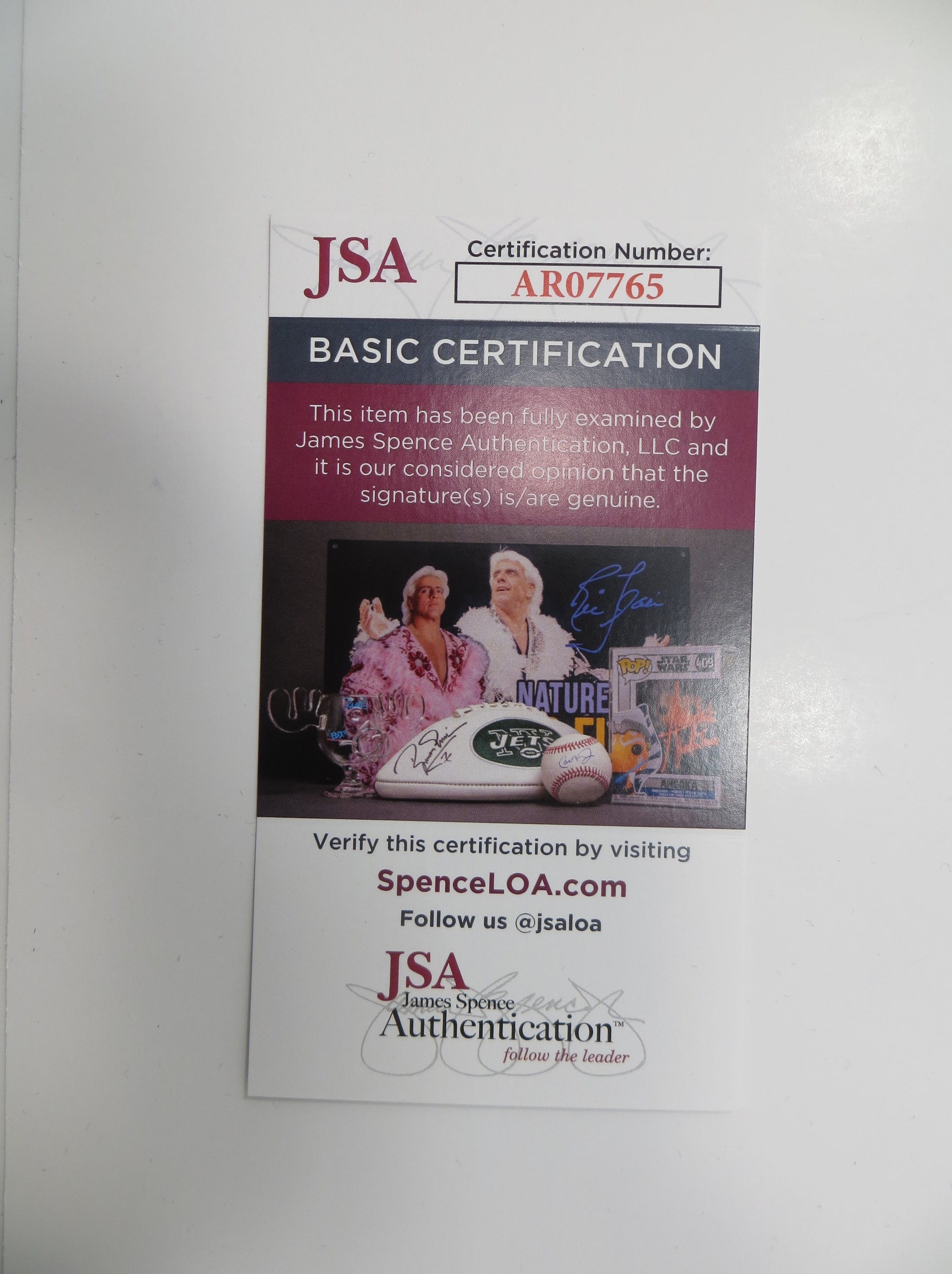 This item comes with a matching numbered sticker to a Certificate of Authenticity card from James Spence Authentication (JSA).