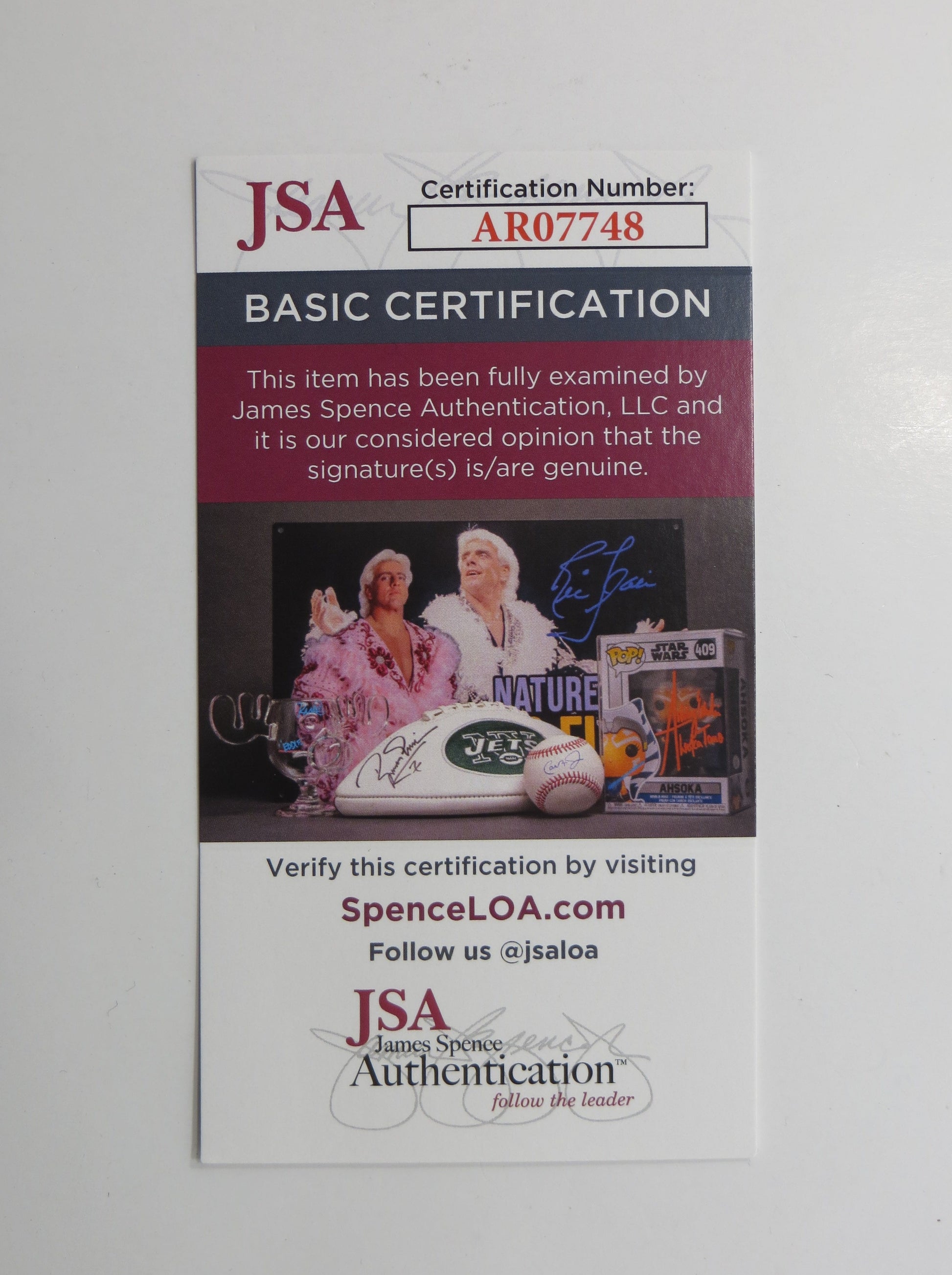 This item comes with a matching numbered sticker to a Certificate of Authenticity card from James Spence Authentication (JSA).