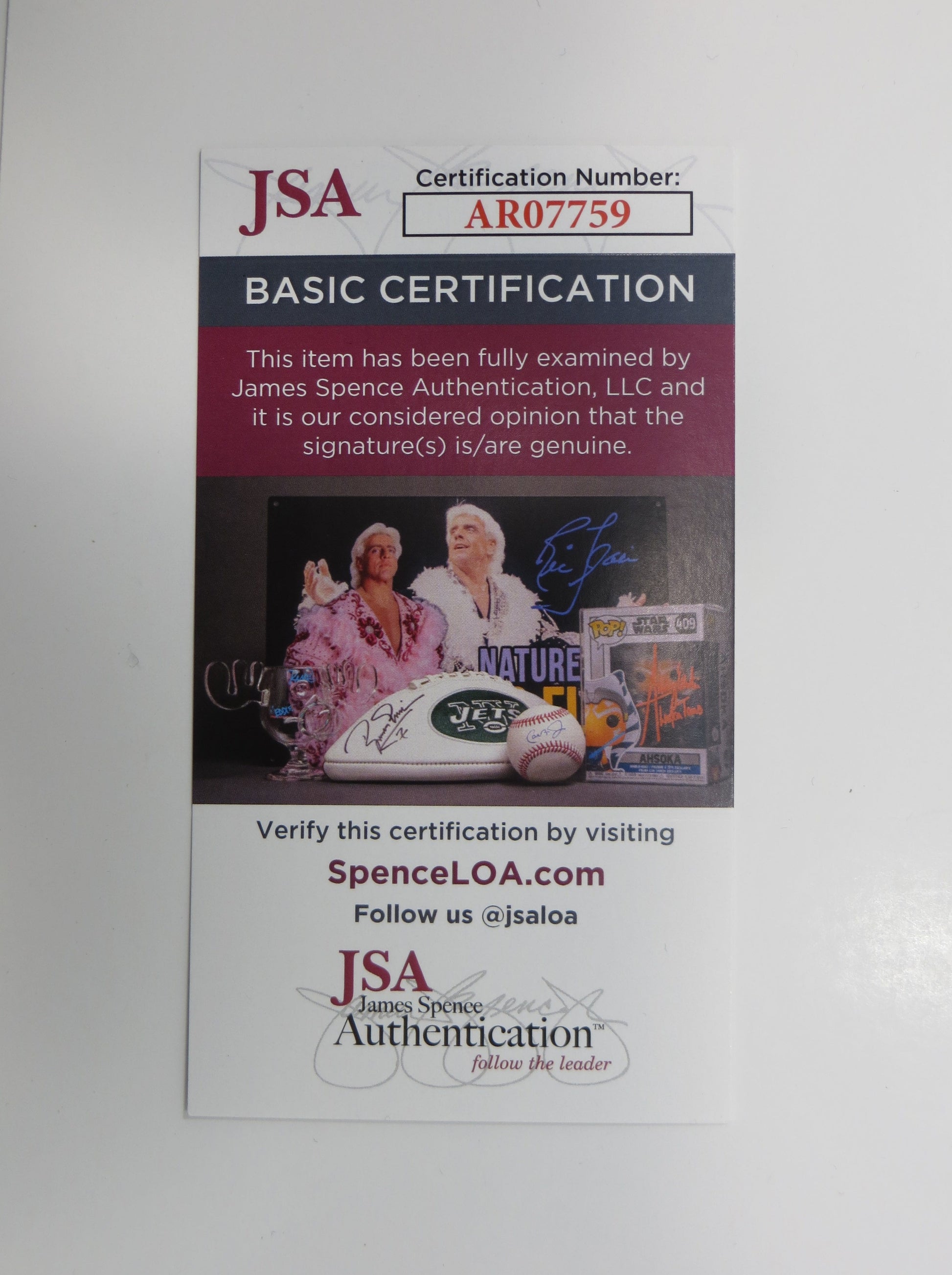 This item comes with a matching numbered sticker to a Certificate of Authenticity card from James Spence Authentication (JSA).