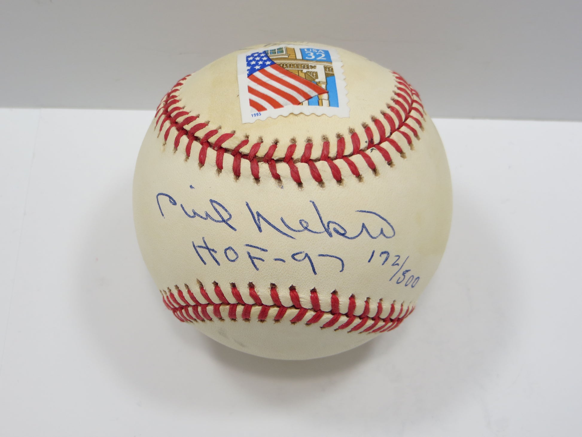 PHIL NIEKRO ATLANTA BRAVES SIGNED Rawlings ONL Baseball Stamp Postmark JSA