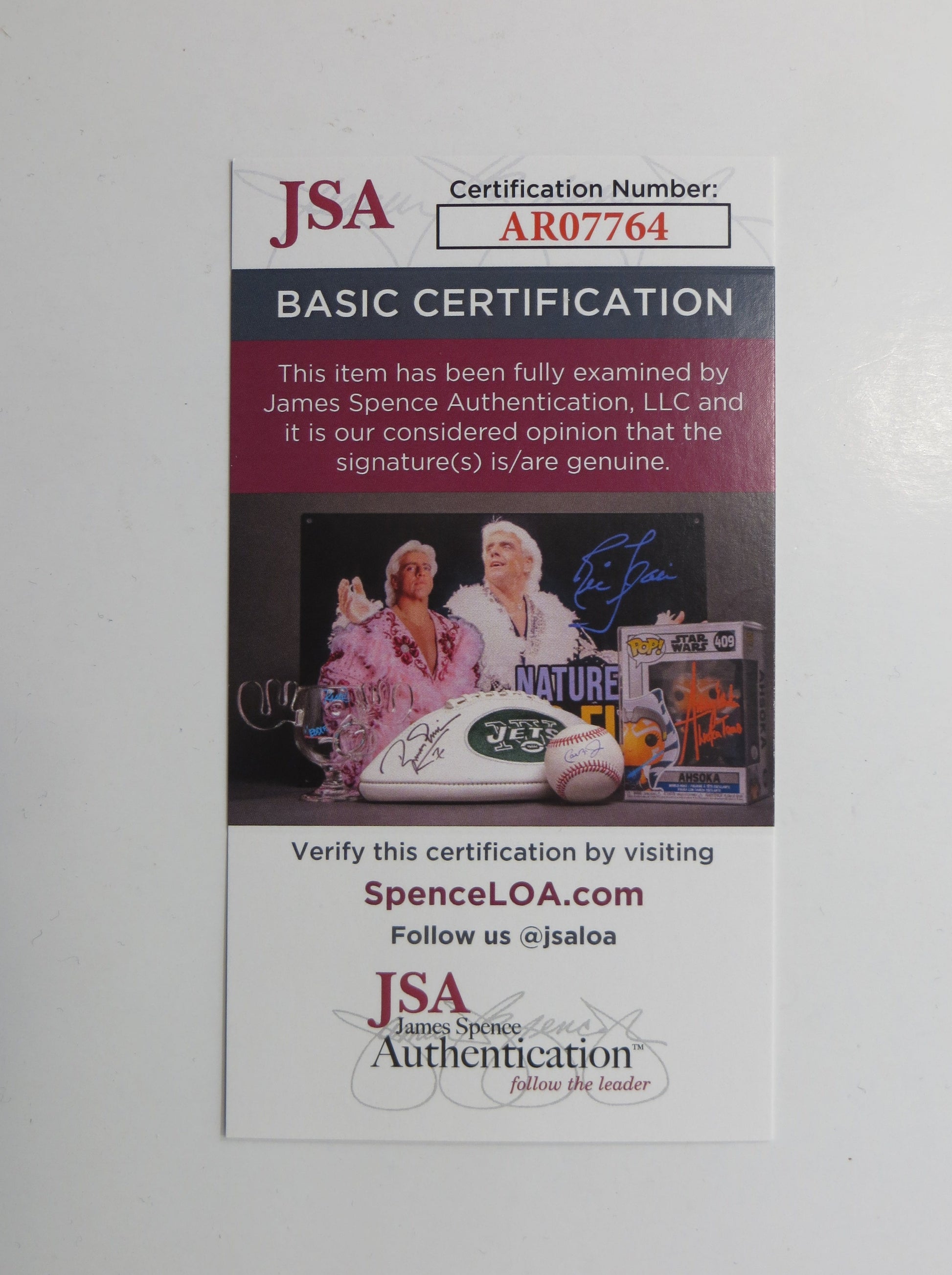 This item comes with a matching numbered sticker to a Certificate of Authenticity card from James Spence Authentication (JSA).