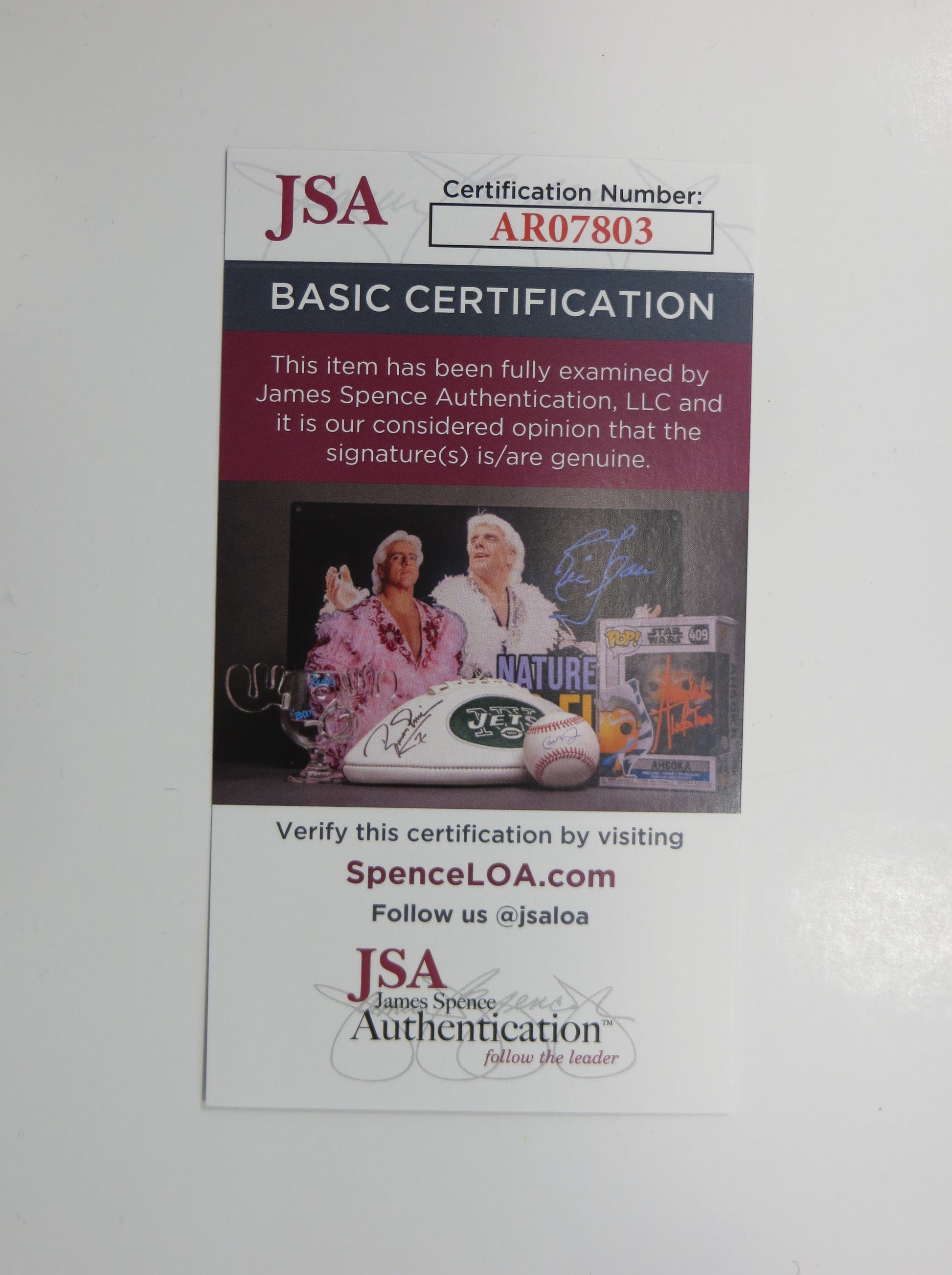 This item comes with a matching numbered sticker to a Certificate of Authenticity card from James Spence Authentication (JSA).
