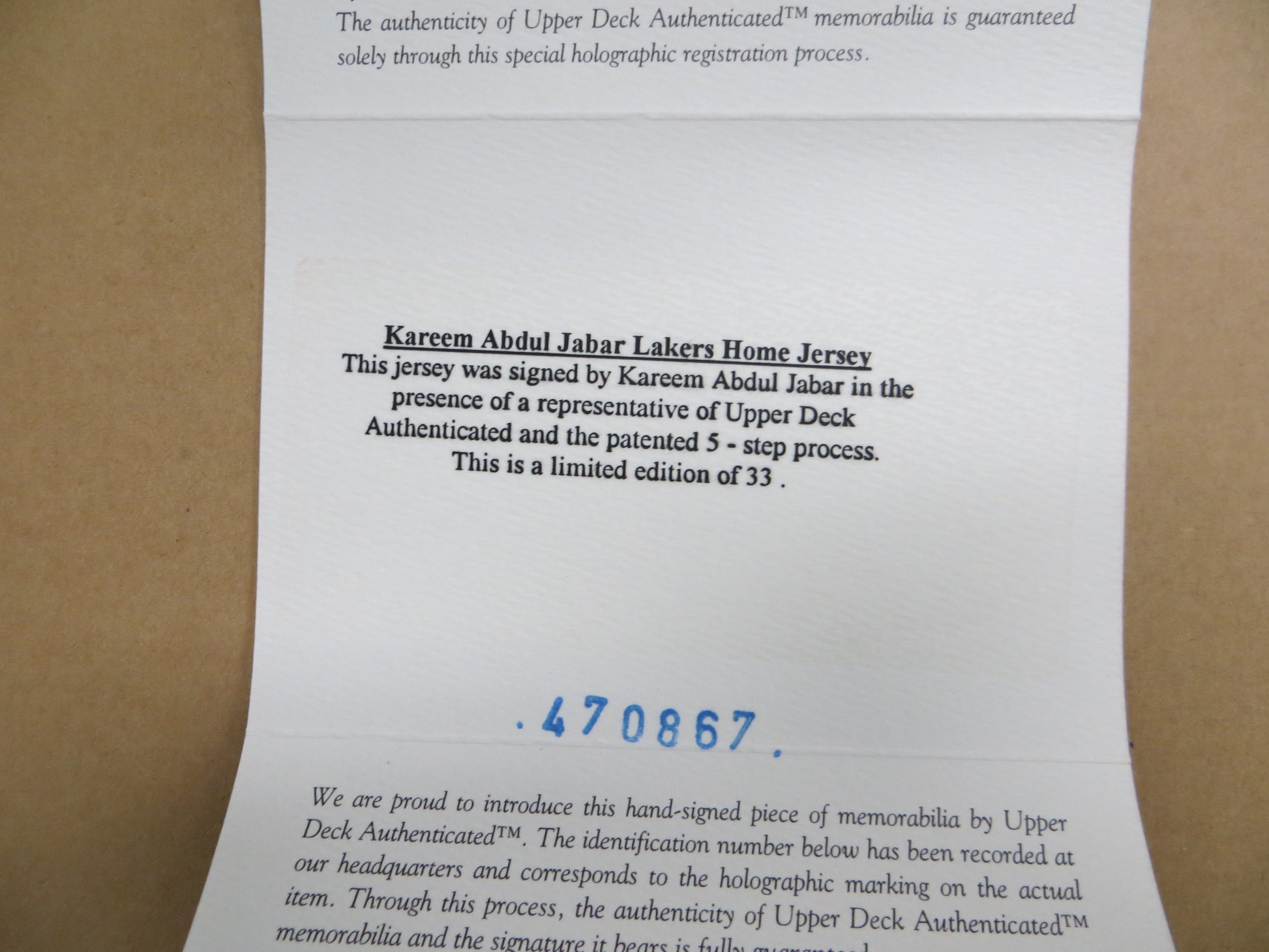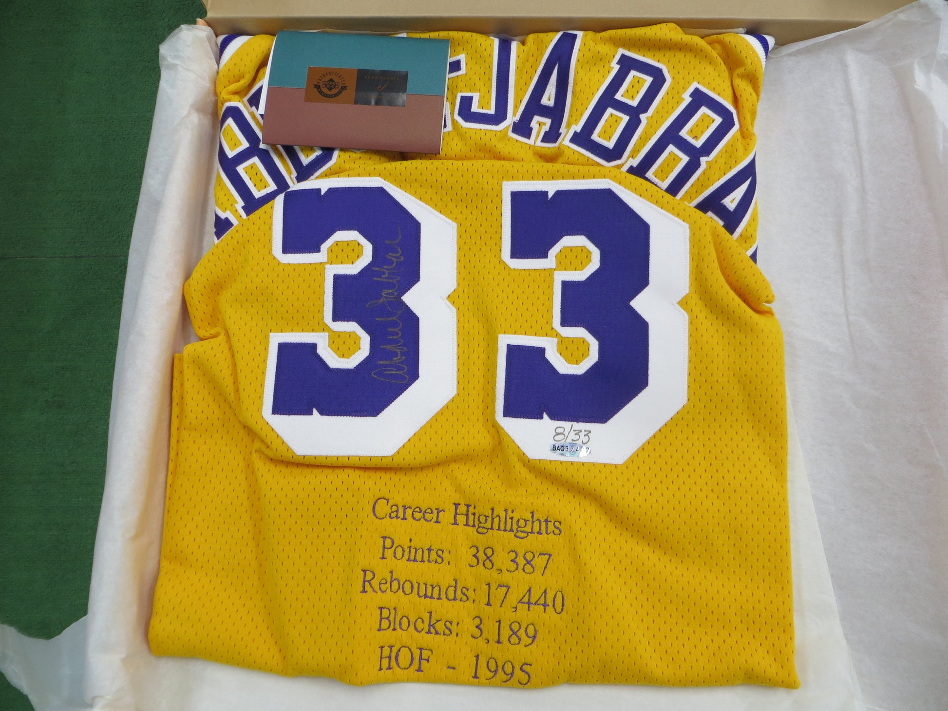 KAREEM ABDUL JABBAR SIGNED Los Angeles Lakers AUTHENTIC STAT JERSEY 8/33 UDA
