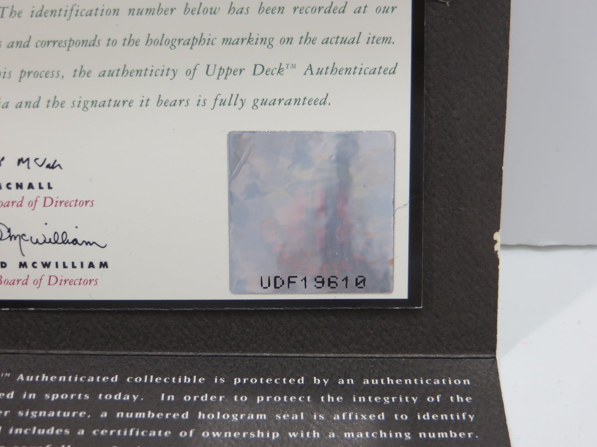 This item comes with a numbered sticker from Upper Deck Authenticated (UDA).