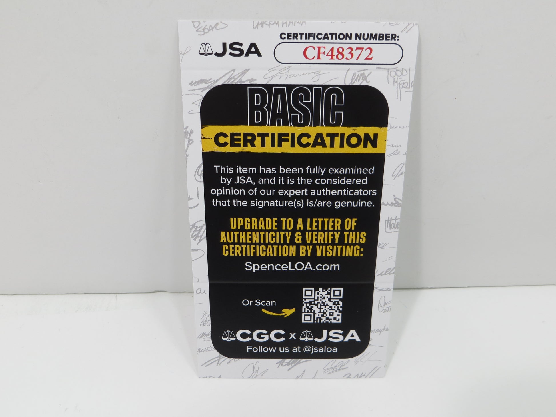 This item comes with a matching numbered sticker to a Certificate of Authenticity card from James Spence Authentication (JSA).