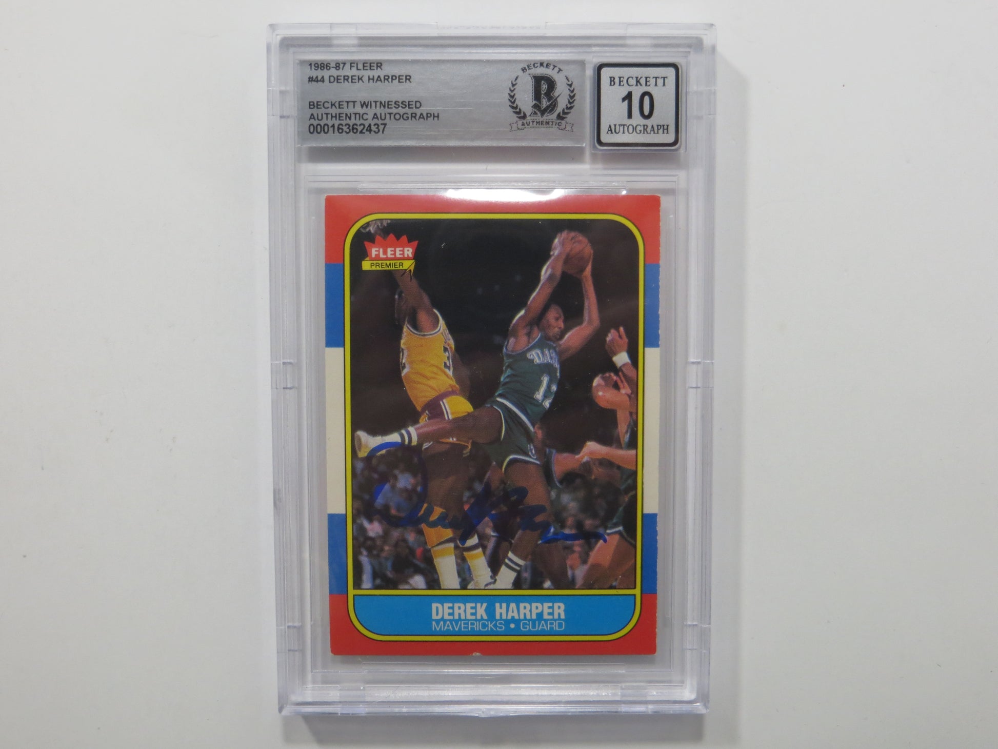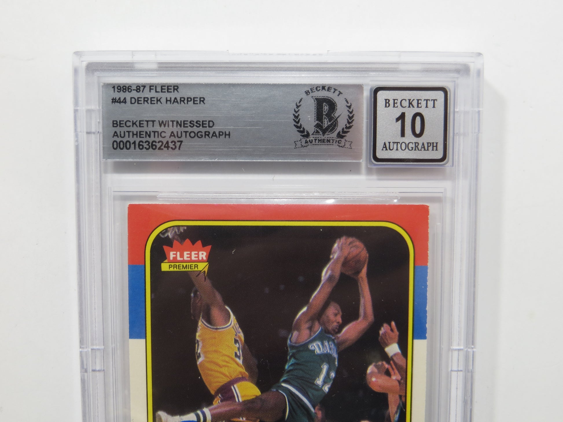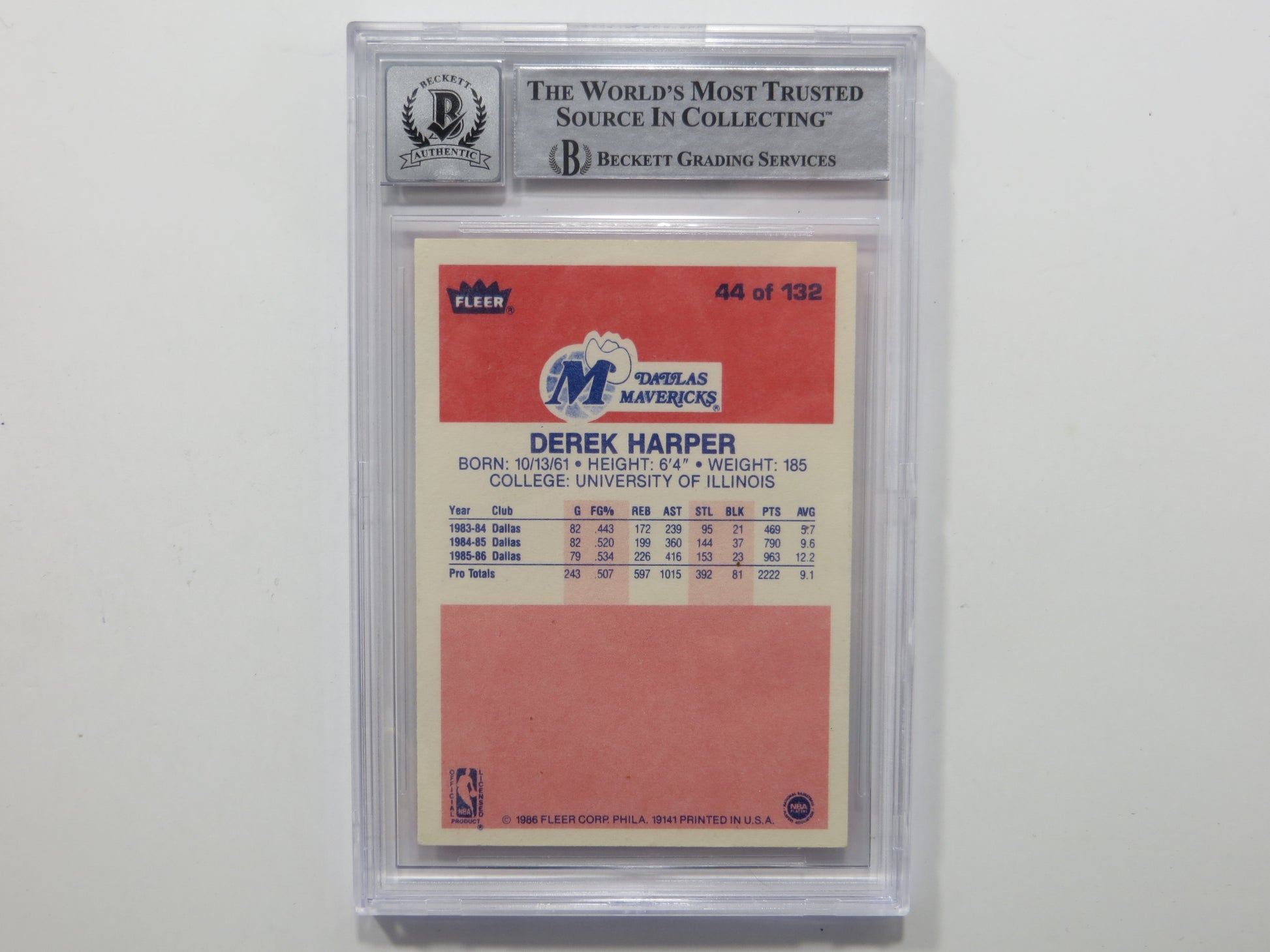 DEREK HARPER SIGNED BGS BAS SLAB 1986 FLEER #44 Rookie Auto 10 DALLAS MAVERICKS
