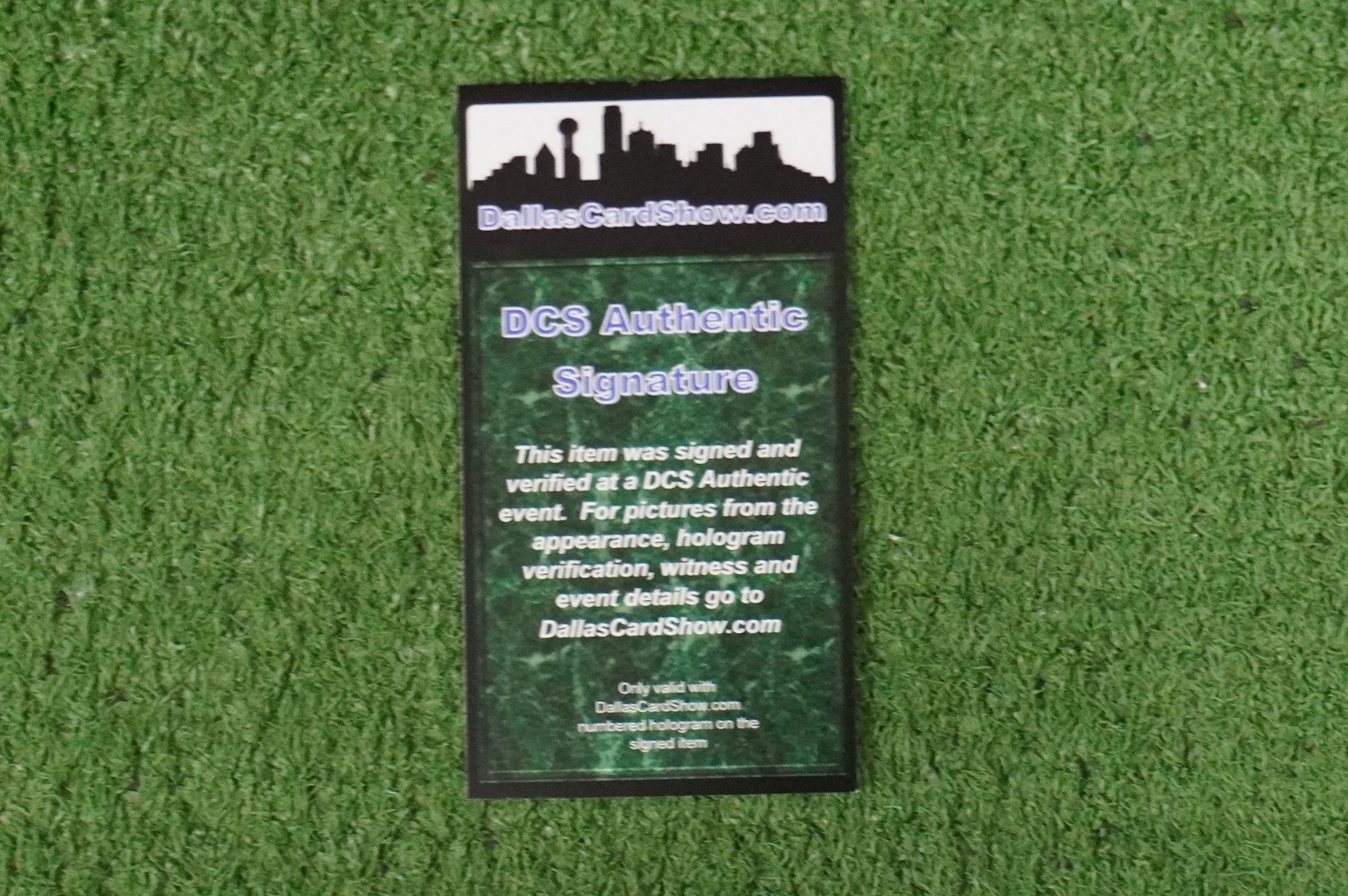 This item comes with a numbered hologram sticker and a Certificated of Authenticity card from Dallas Card Show Authentic (DCS).