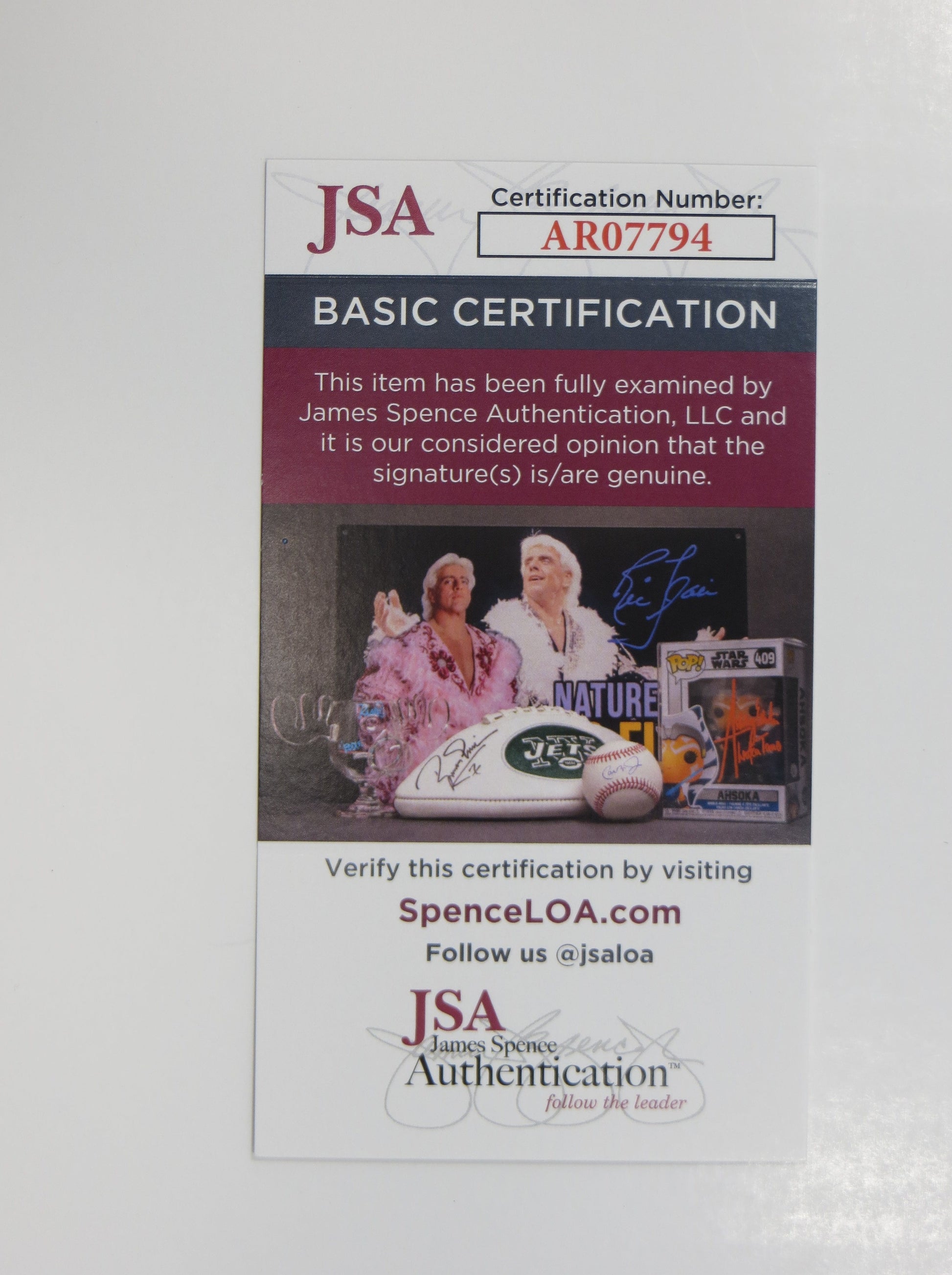 This item comes with a matching numbered sticker to a Certificate of Authenticity card from James Spence Authentication (JSA).