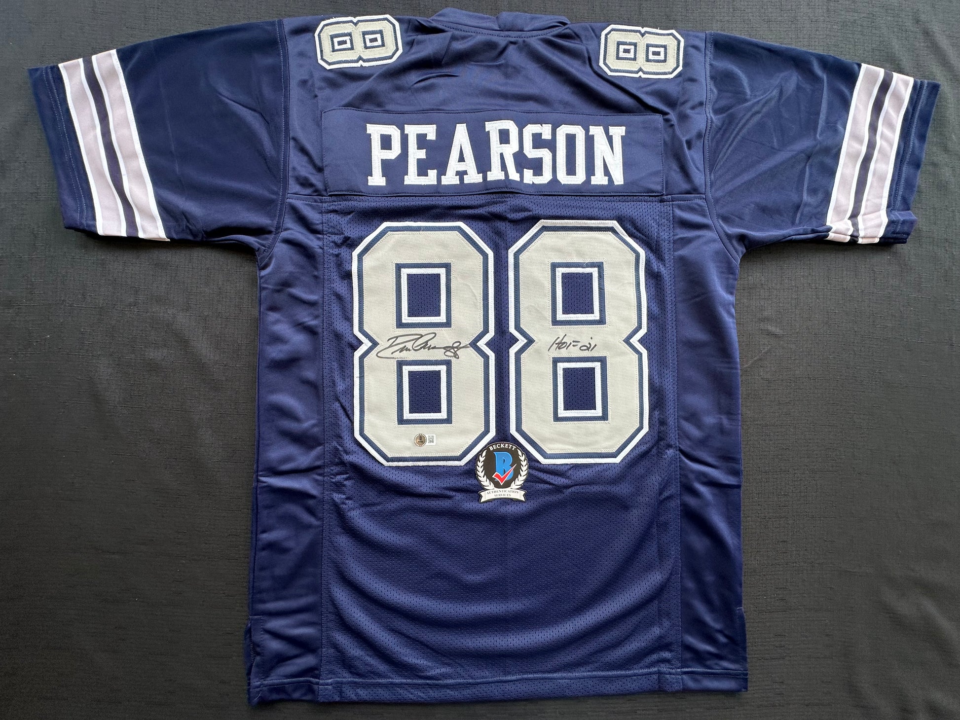 DREW PEARSON DALLAS COWBOYS SIGNED BLUE JERSEY w/HOF 21 Inscription BAS