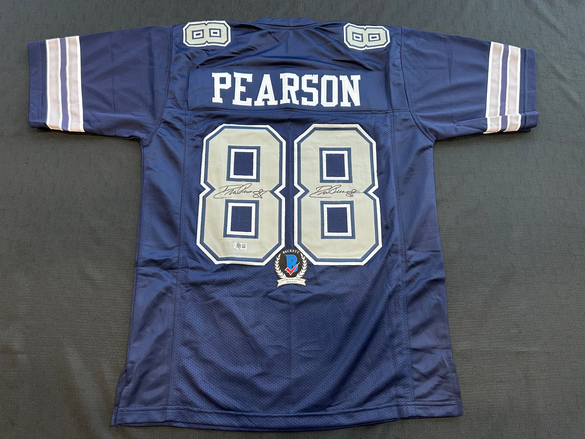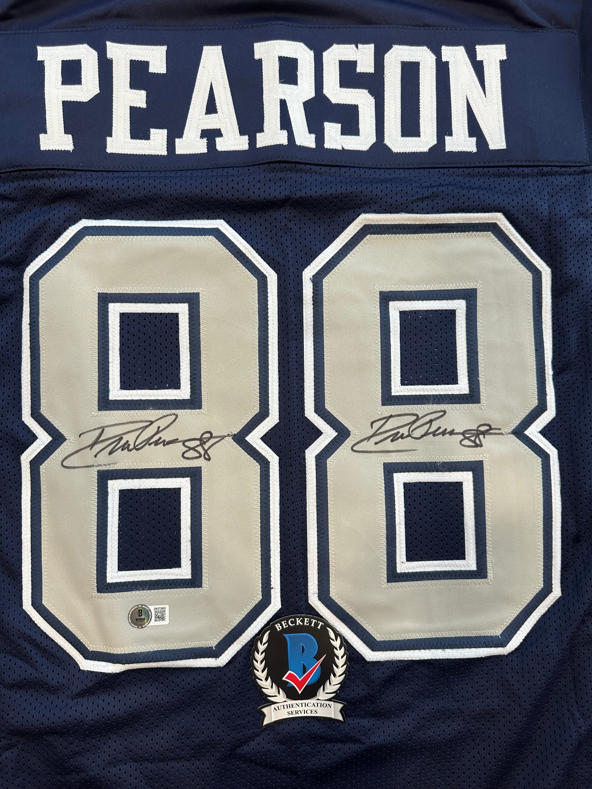 DREW PEARSON DALLAS COWBOYS SIGNED BLUE JERSEY Double Sig BAS