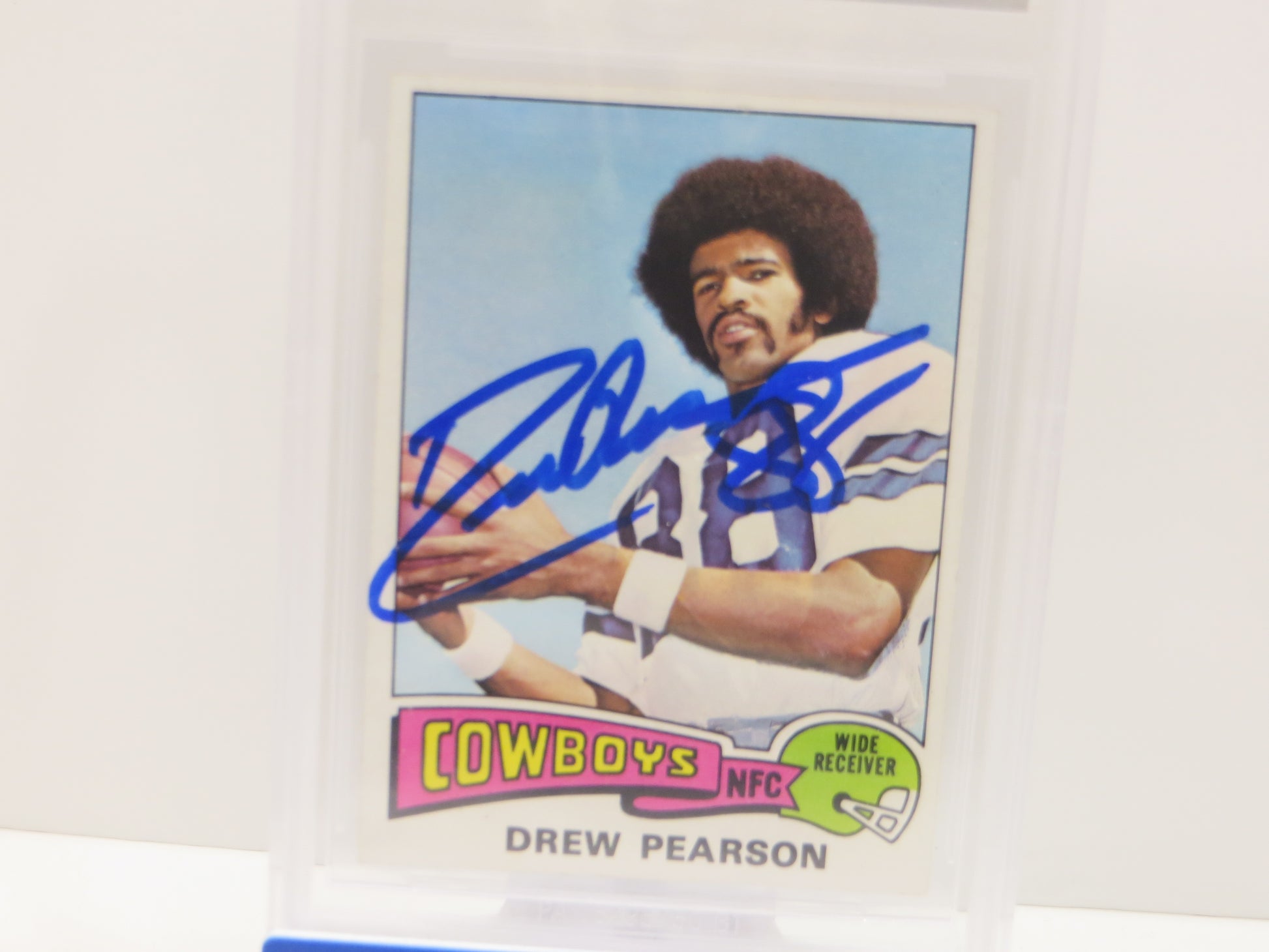 DREW PEARSON SIGNED 1975 TOPPS #65 DALLAS COWBOYS BGS BAS SLAB