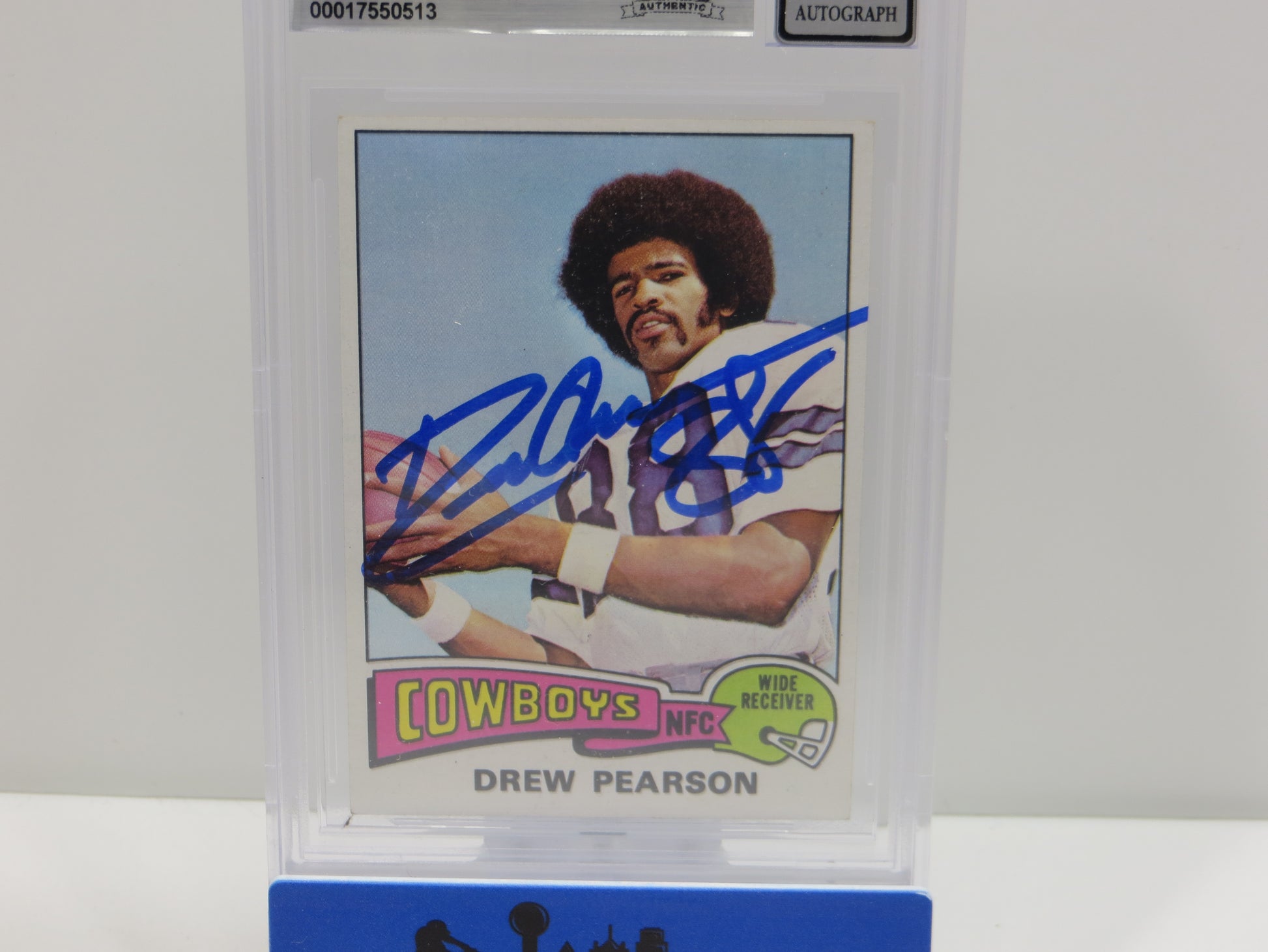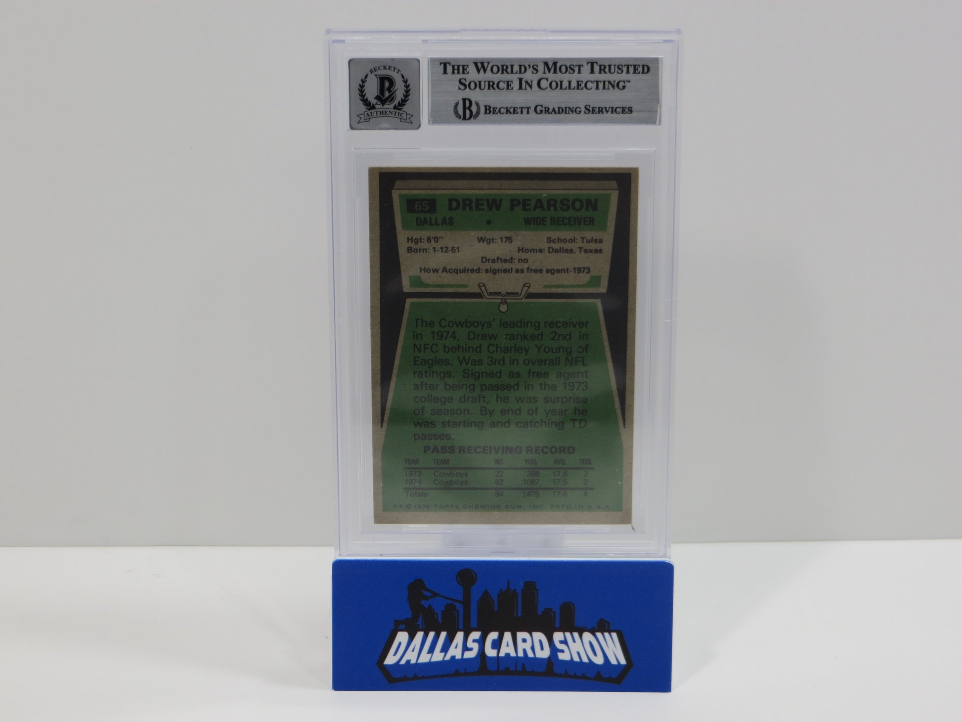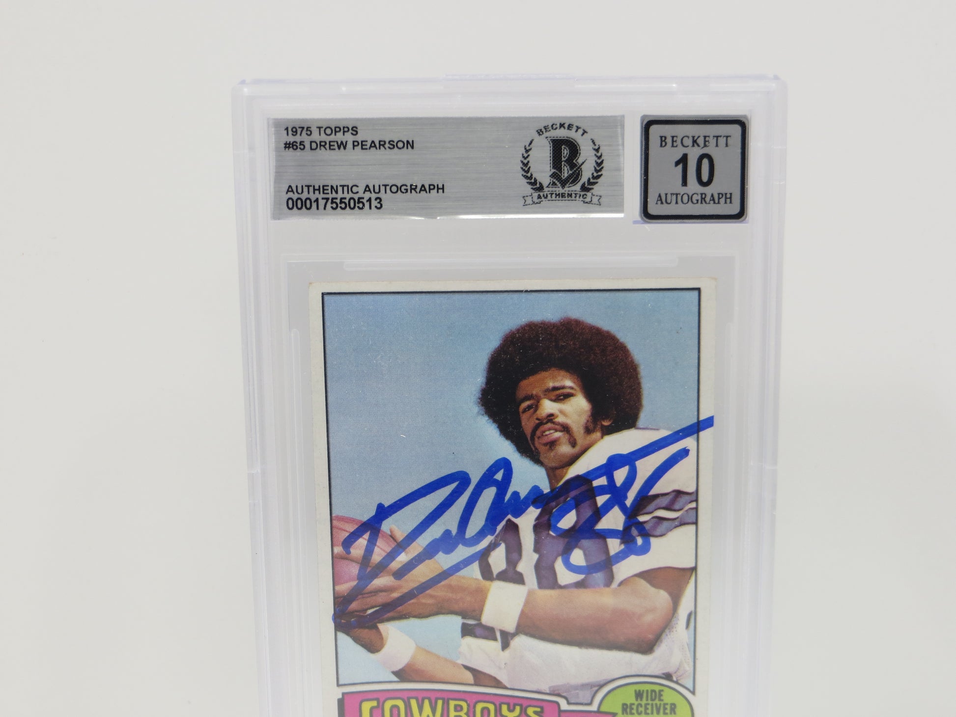 DREW PEARSON SIGNED 1975 TOPPS #65 DALLAS COWBOYS BGS BAS SLAB AUTO 10