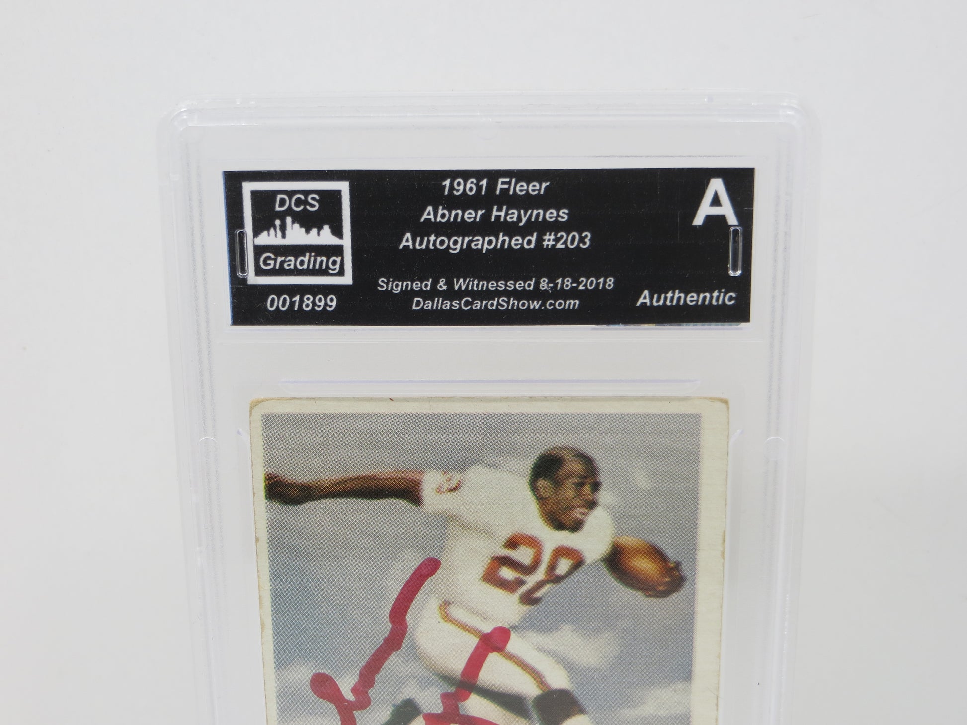 ABNER HAYNES SIGNED 1961 FLEER Football Card #203 DCS Authentic SLAB