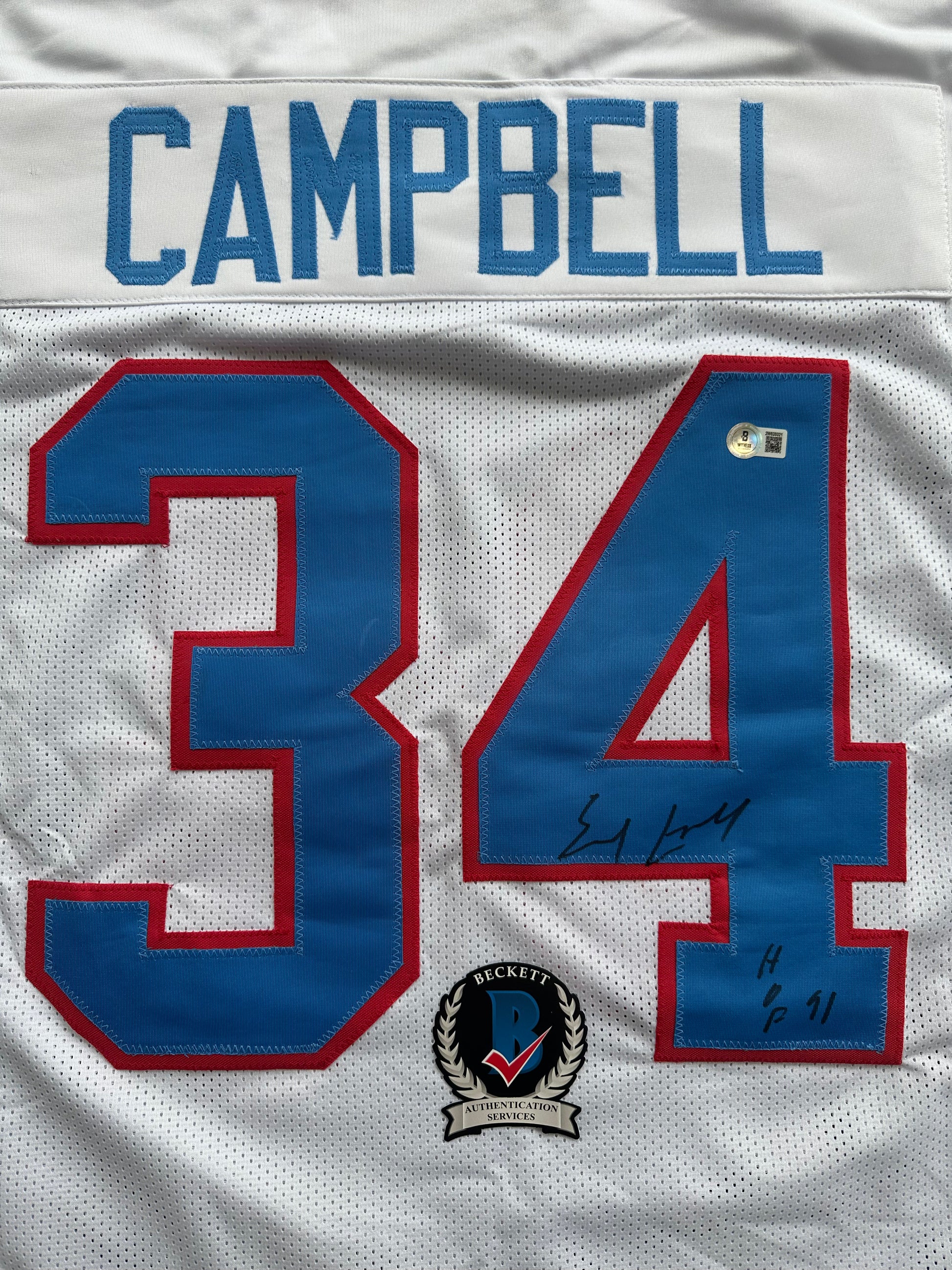 EARL CAMPBELL SIGNED WHITE FOOTBALL JERSEY Houston Oilers w/ "HOF 91" BAS COA