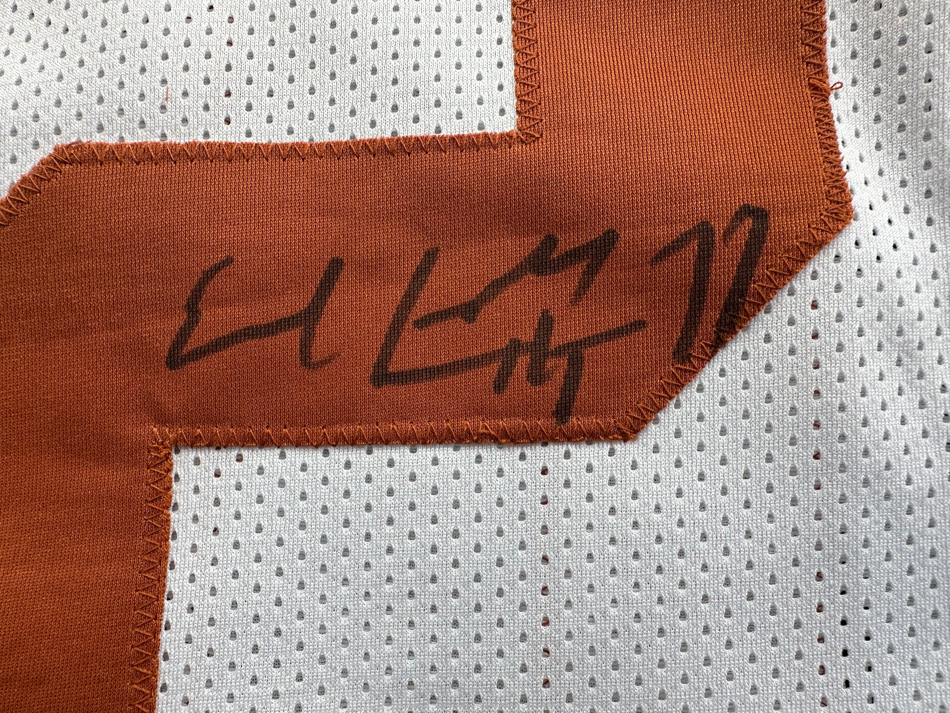 EARL CAMPBELL SIGNED WHITE FOOTBALL JERSEY TEXAS LONGHORNS BAS COA