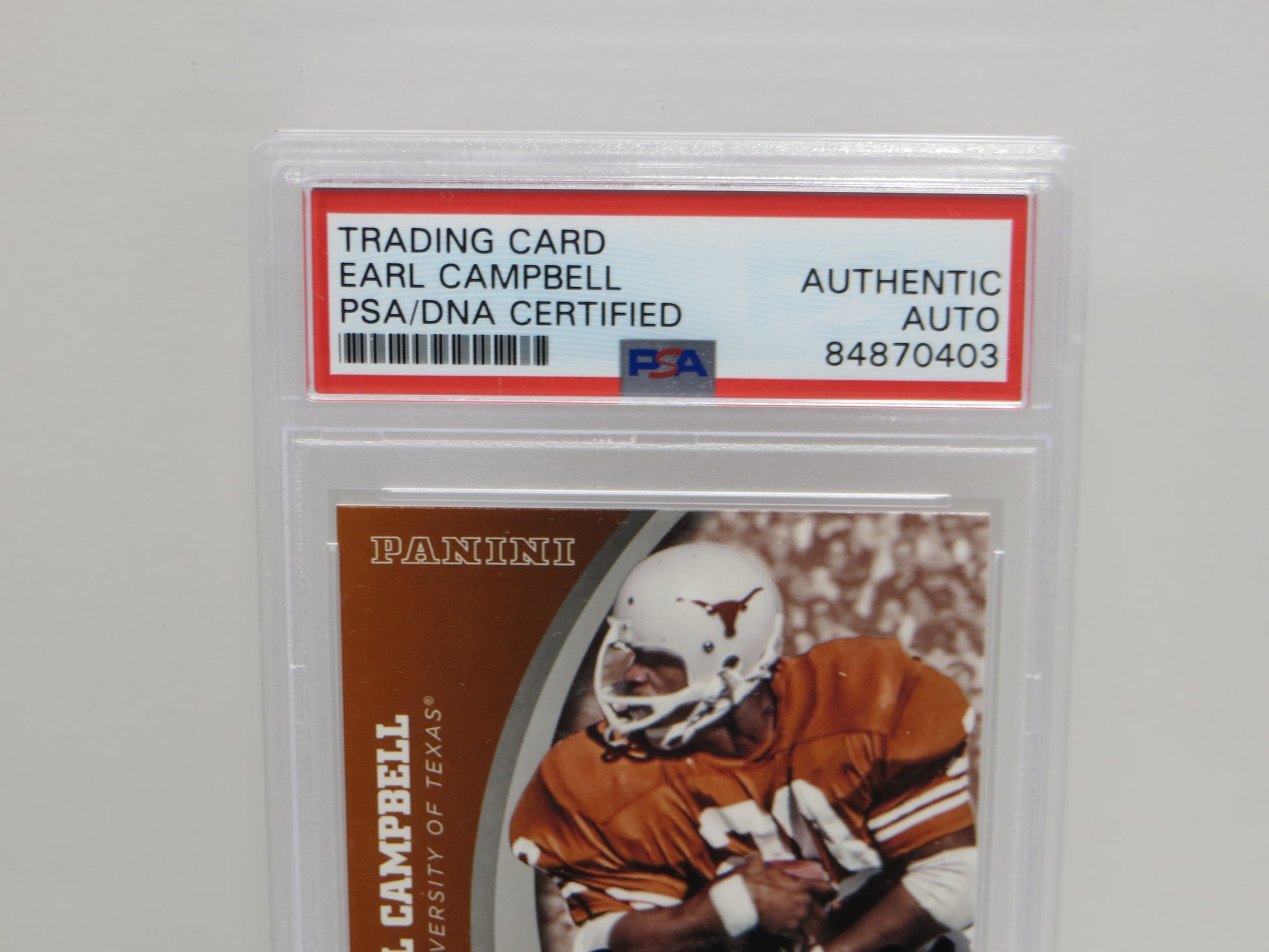 EARL CAMPBELL SIGNED 2015 PANINI COLLEGE #20 Football Card PSA SLAB Authentic AUTO