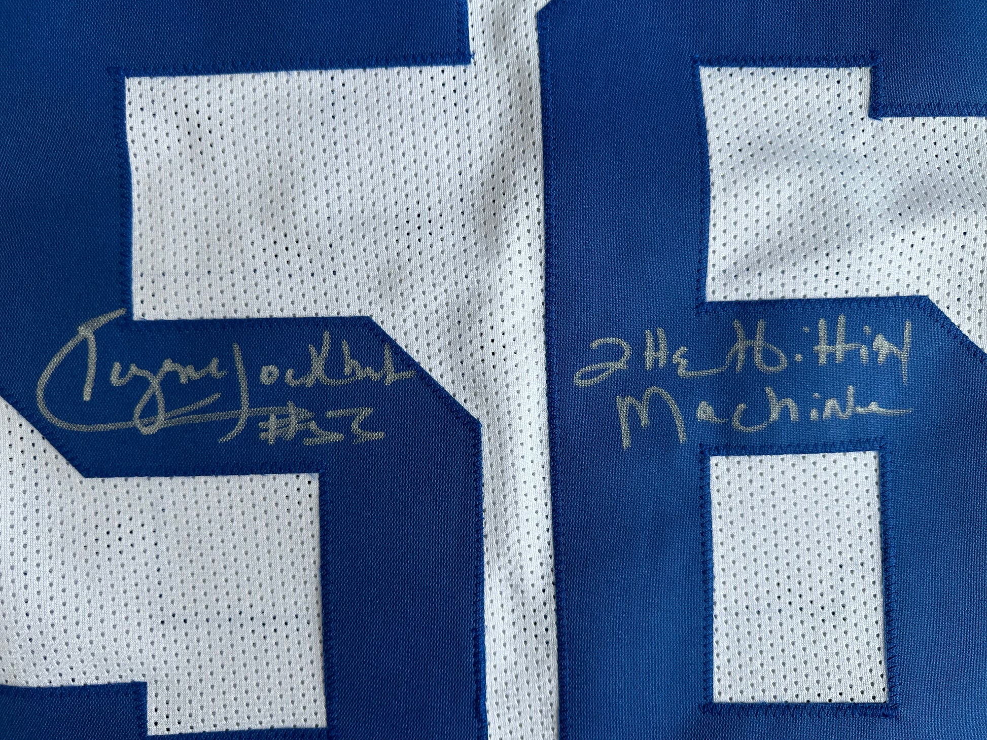 EUGENE LOCKHART DALLAS COWBOYS SIGNED WHITE JERSEY w/MULTI INSCs L BAS