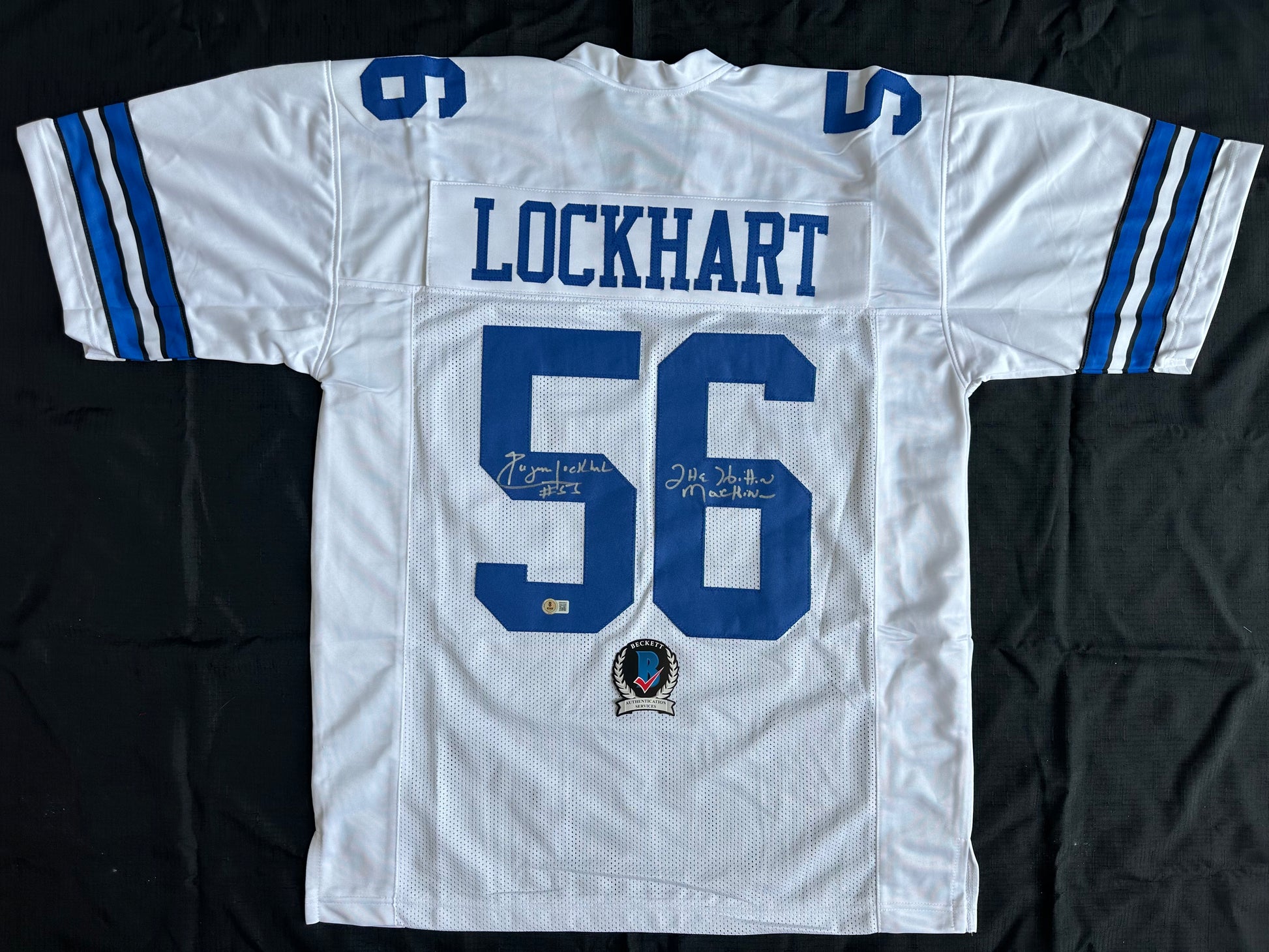 EUGENE LOCKHART DALLAS COWBOYS SIGNED WHITE JERSEY w/MULTI INSCs XL BAS