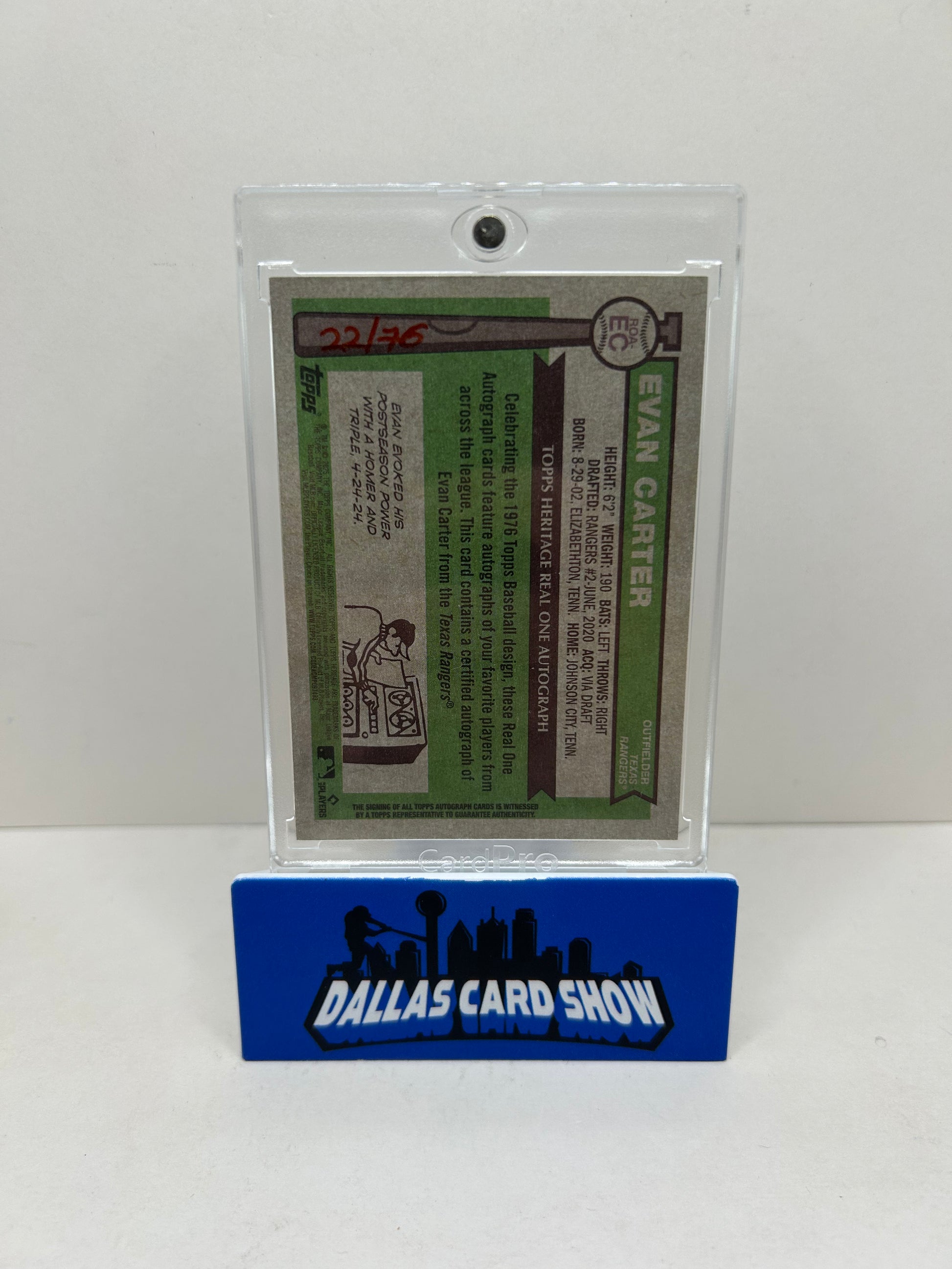 Evan Carter 2025 Topps Heritage Real One Red Ink On Card Auto /76 Rangers
