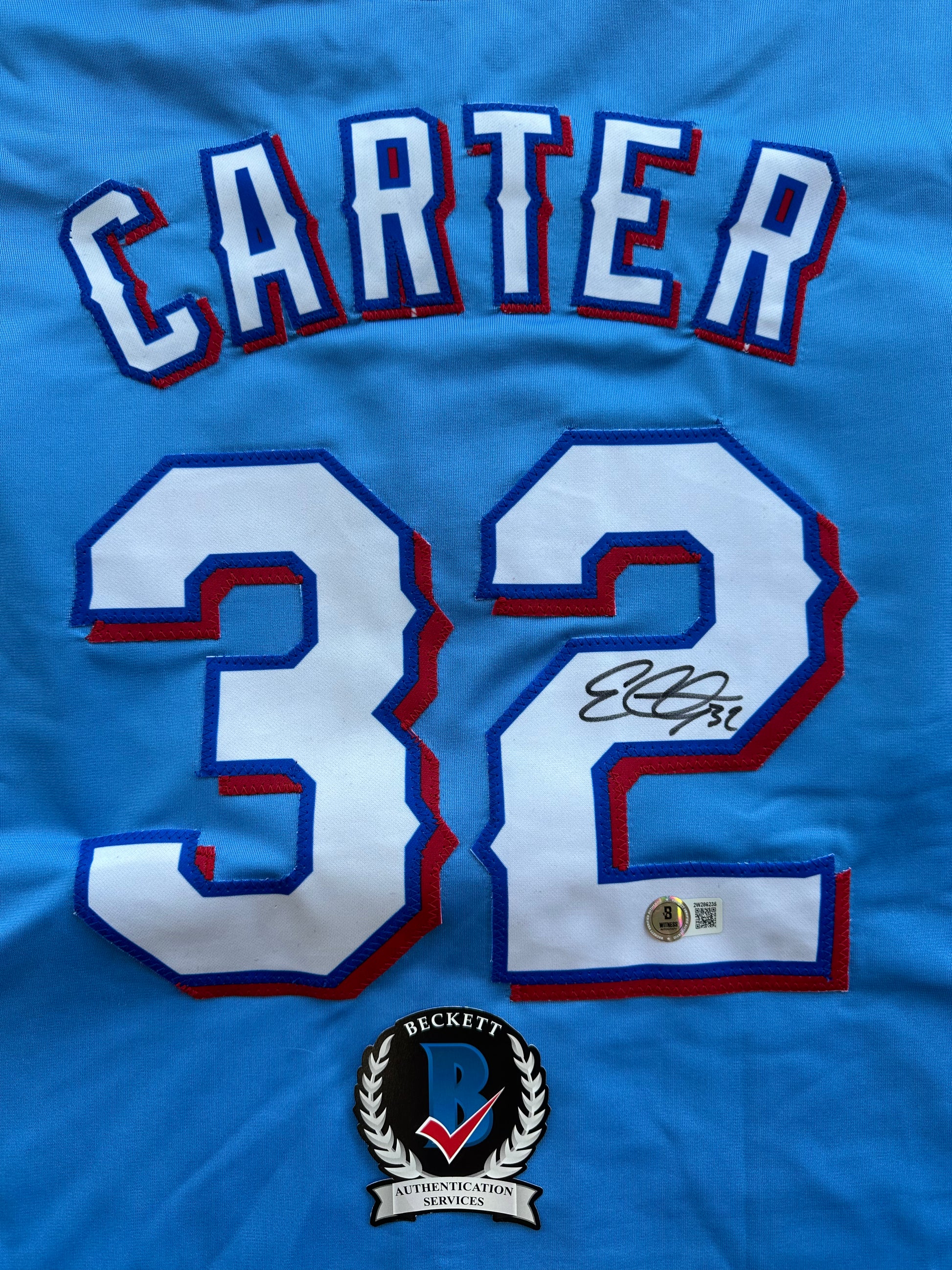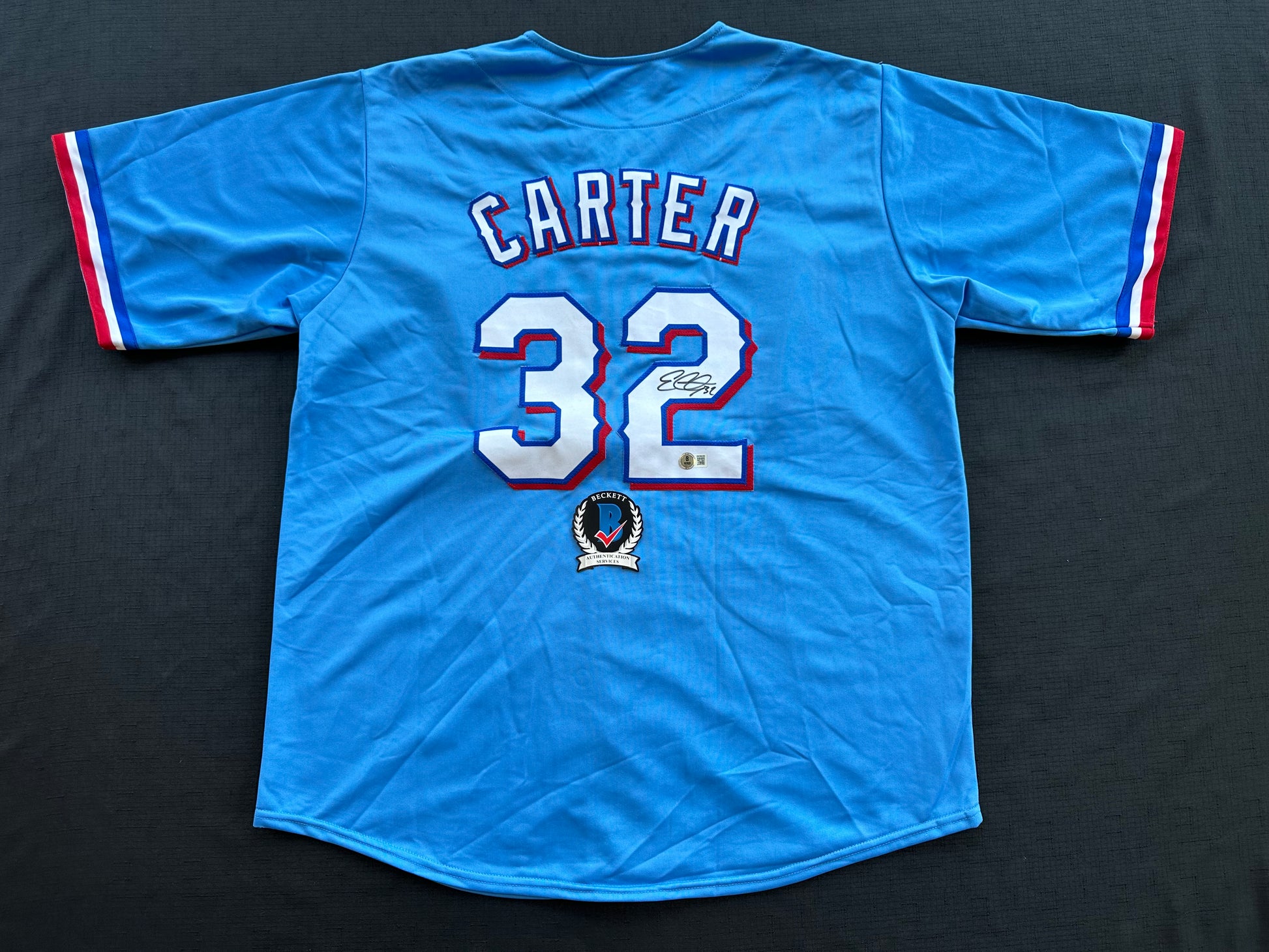 EVAN CARTER TEXAS RANGERS SIGNED Light Blue JERSEY XL BAS COA