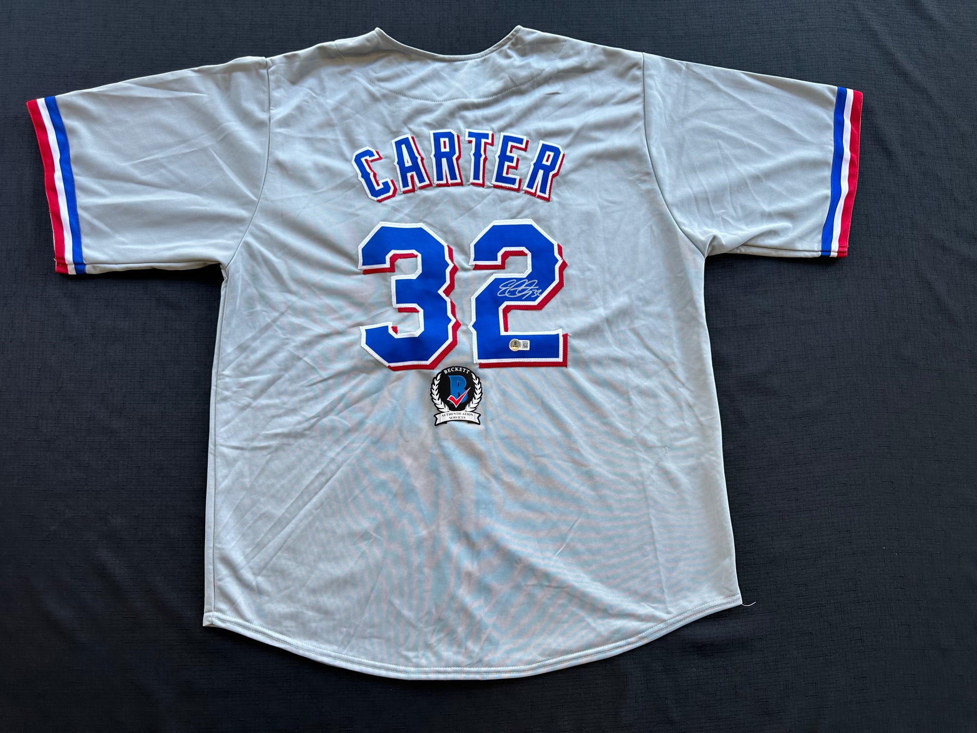 EVAN CARTER TEXAS RANGERS SIGNED Road JERSEY XL BAS COA