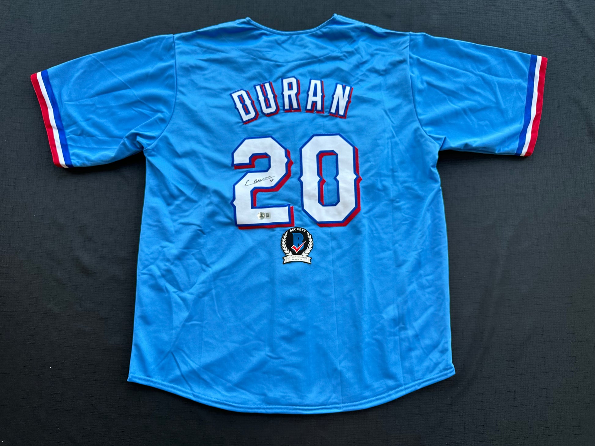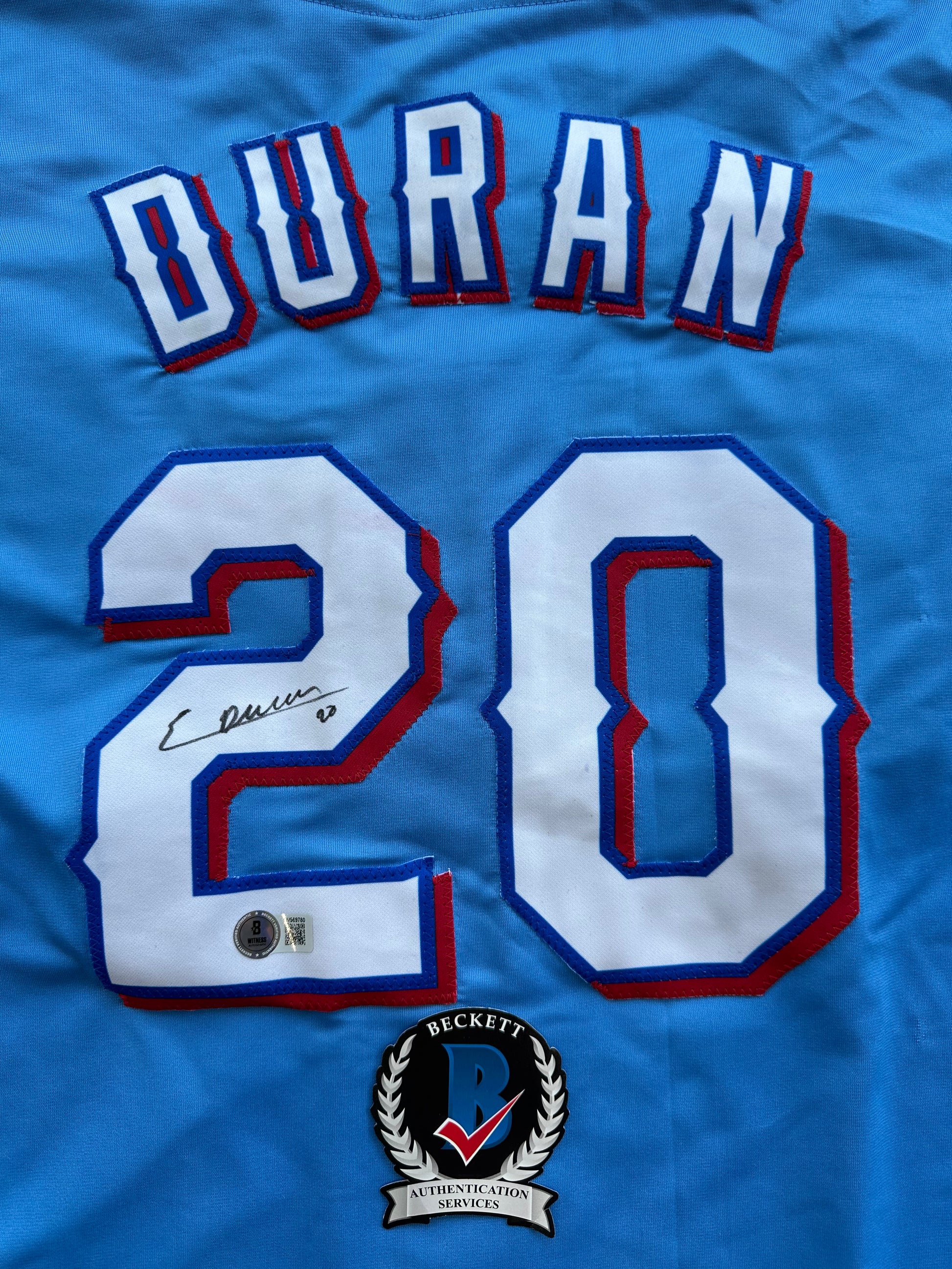EZEQUIEL DURAN TEXAS RANGERS SIGNED Light Blue JERSEY XL BAS COA