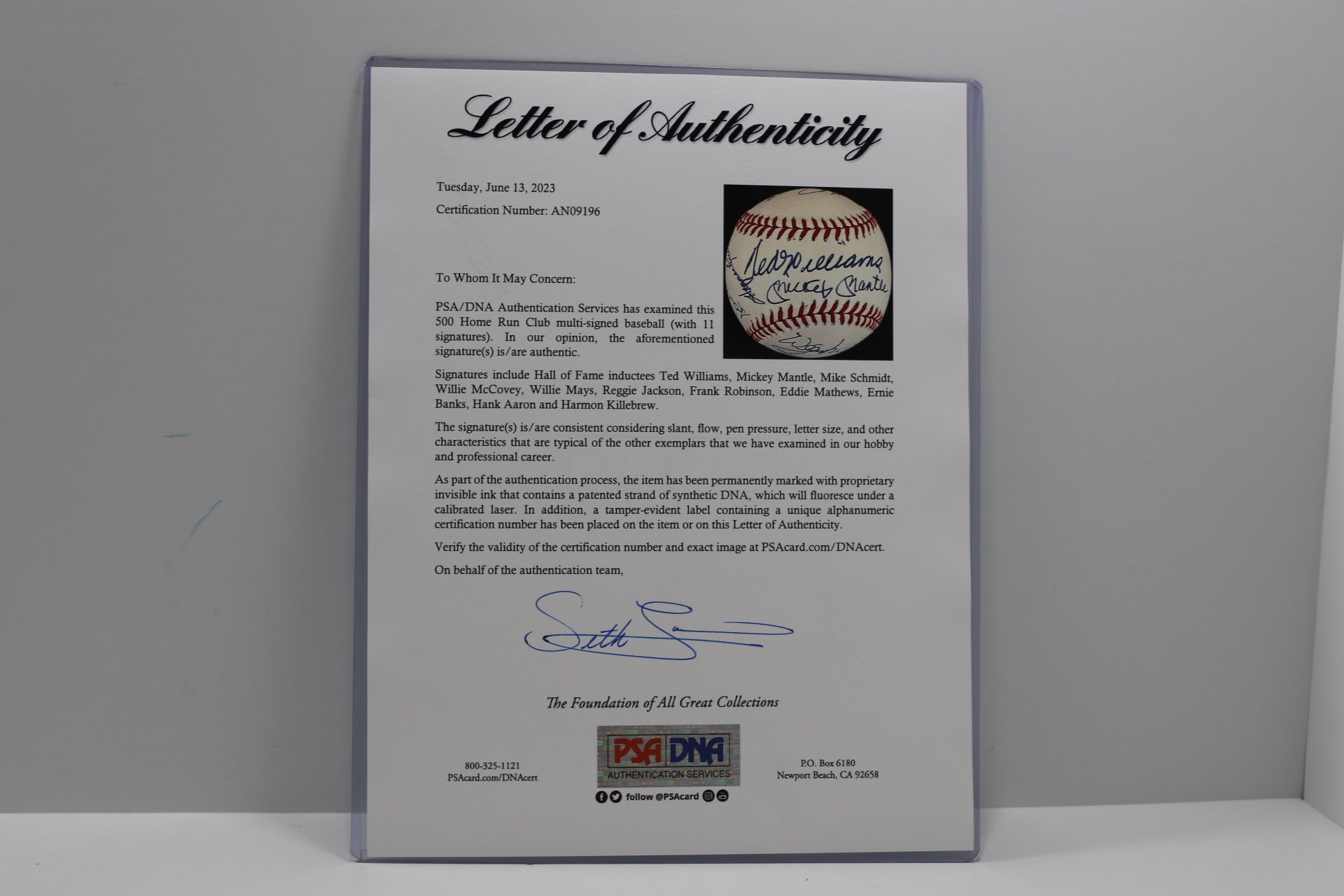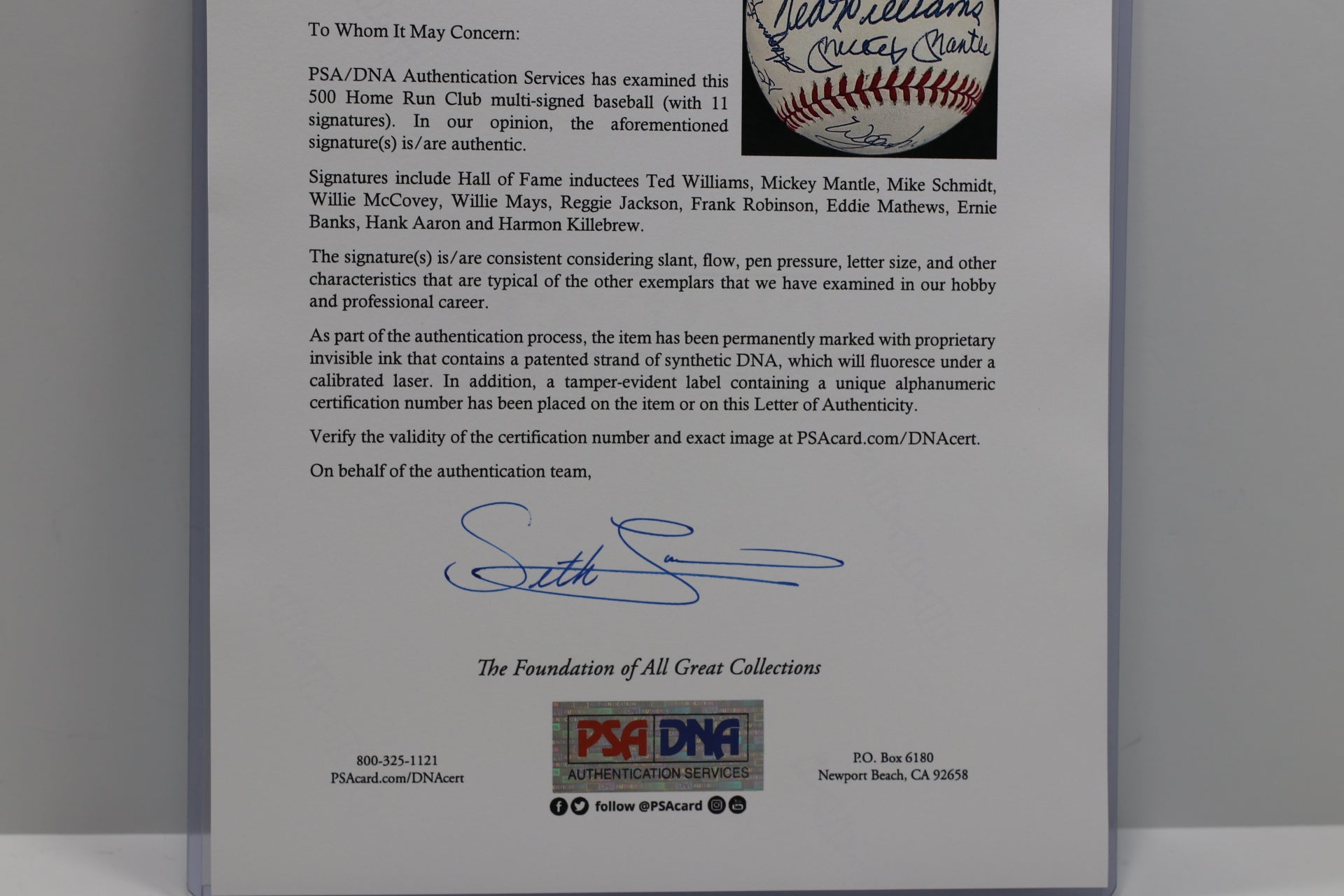 -- PSA/DNA FULL LETTER OF AUTHENTICITY --