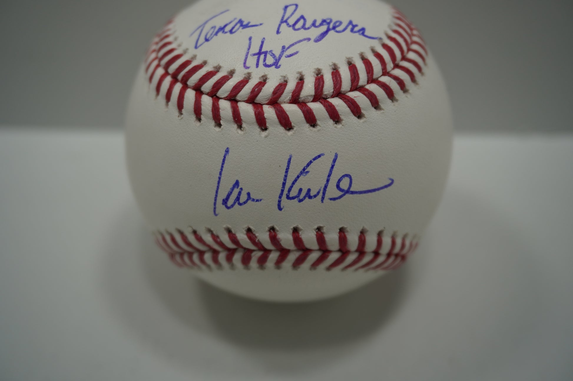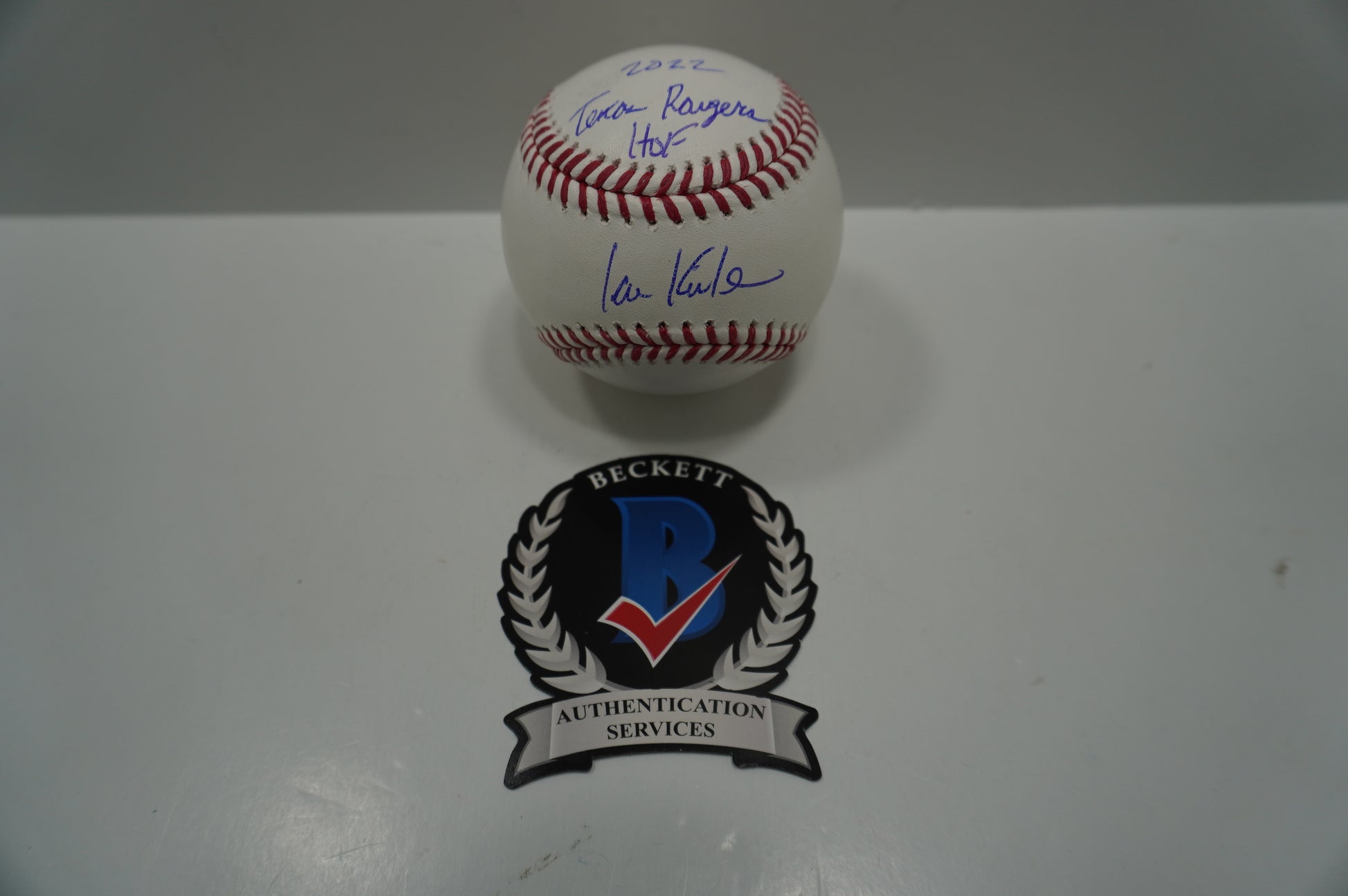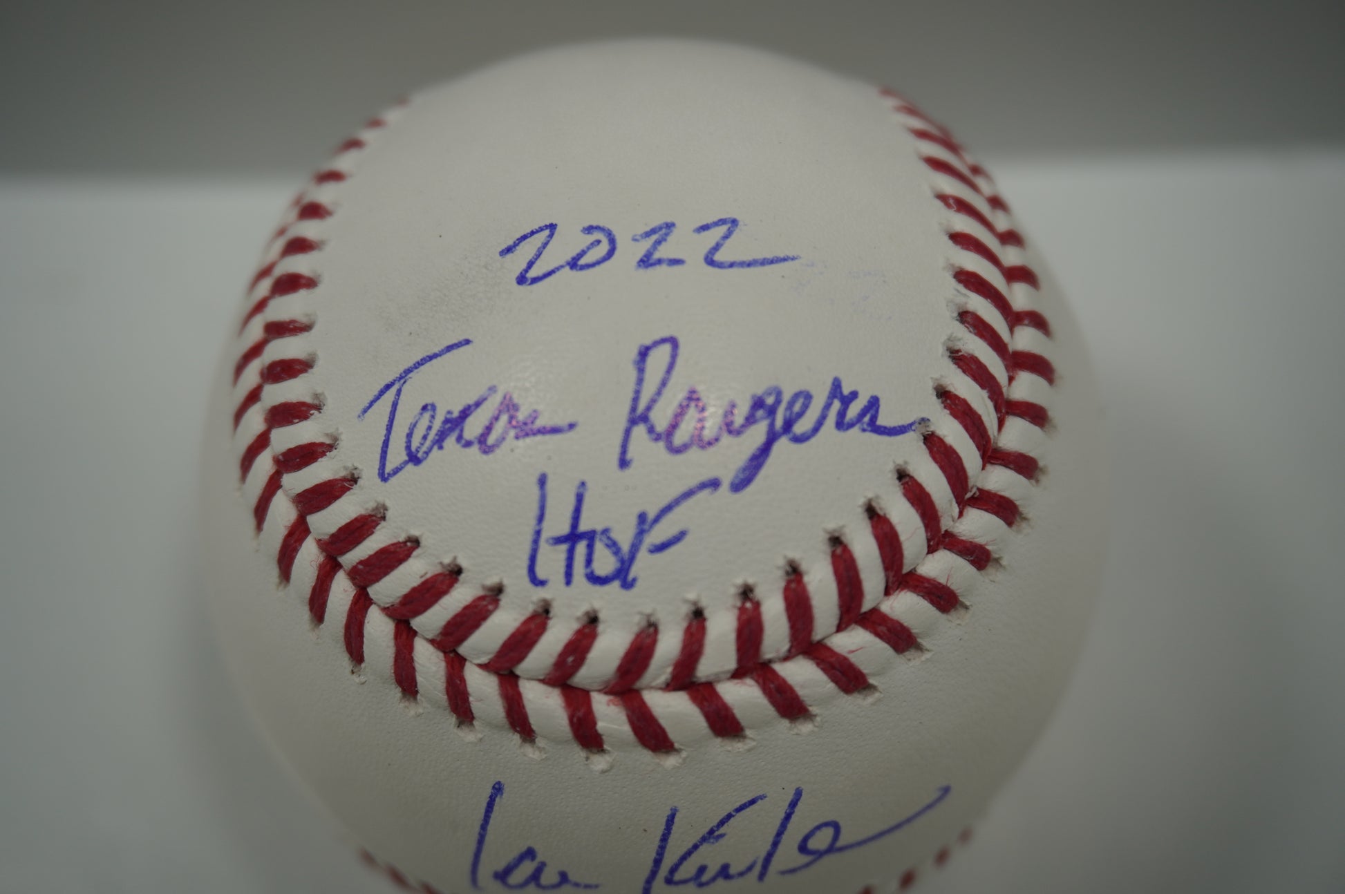 IAN KINSLER TEXAS RANGERS SIGNED Rawlings OML BASEBALL w/2022 Rangers HOF BAS