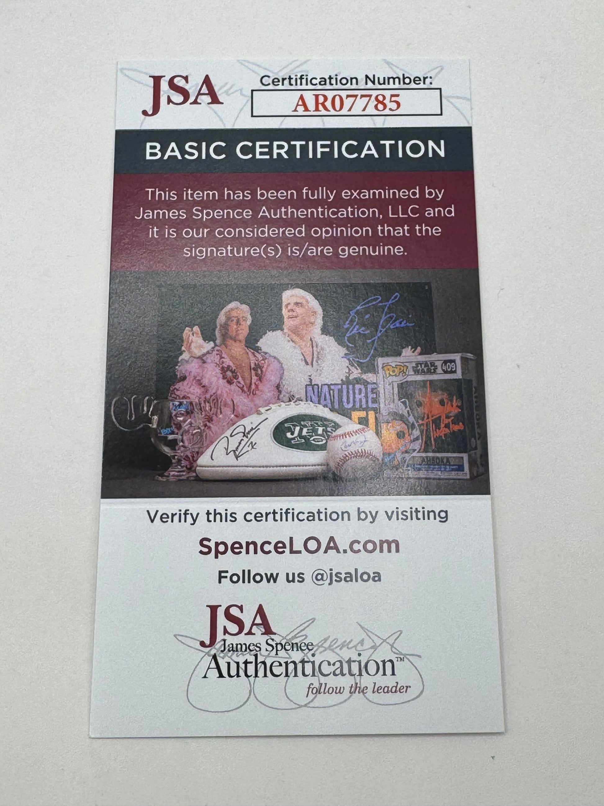This item comes with a matching numbered sticker to a Certificate of Authenticity card from James Spence Authentication (JSA).