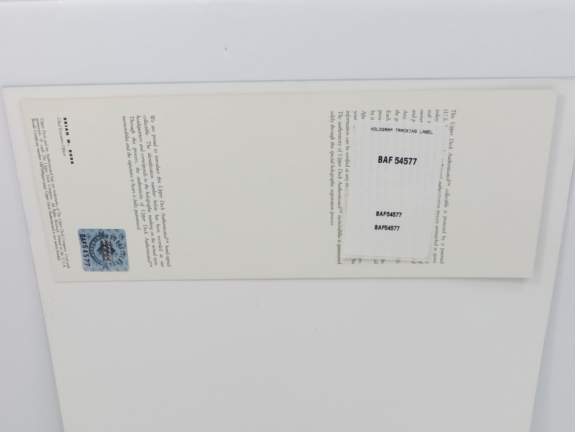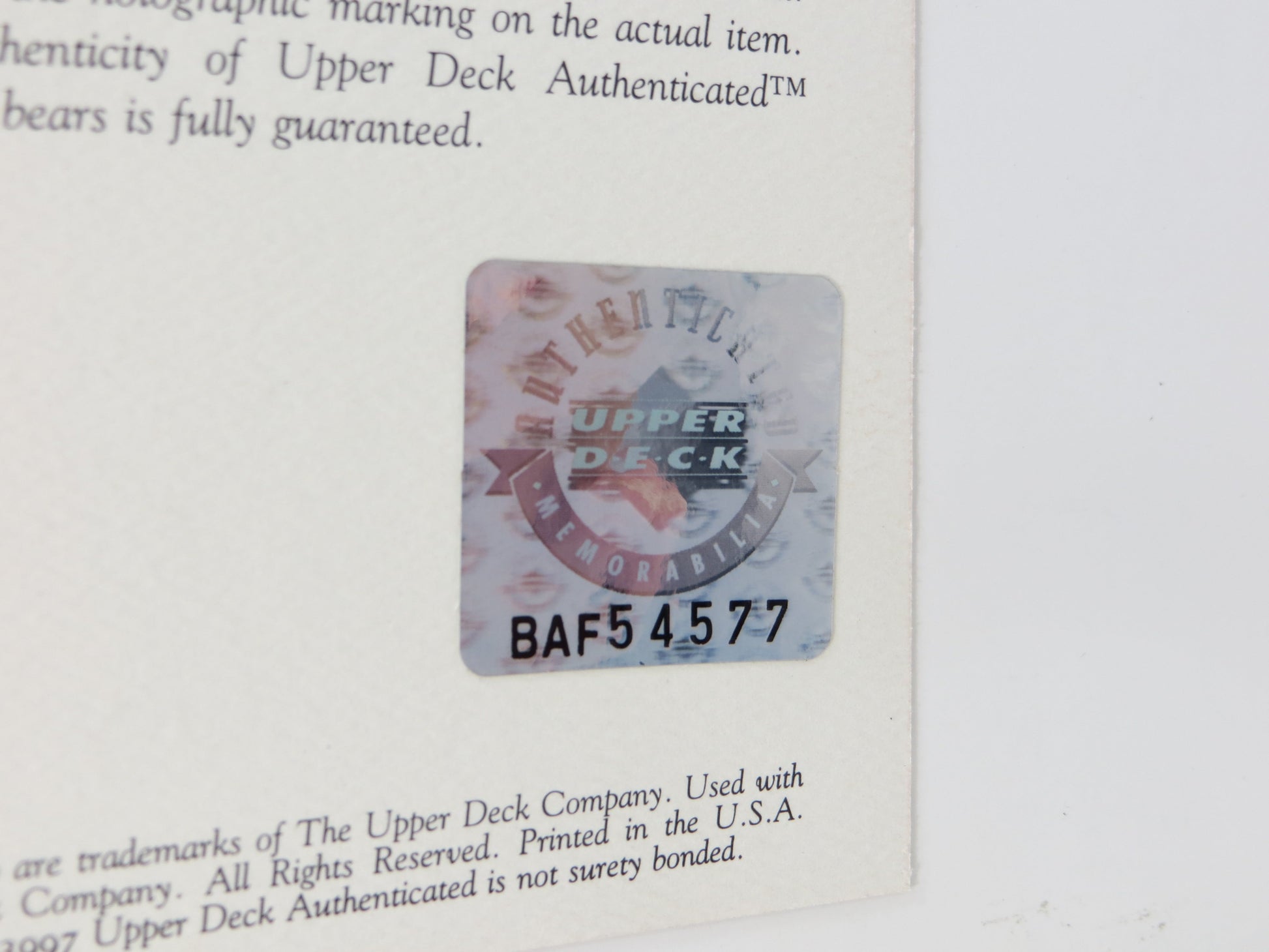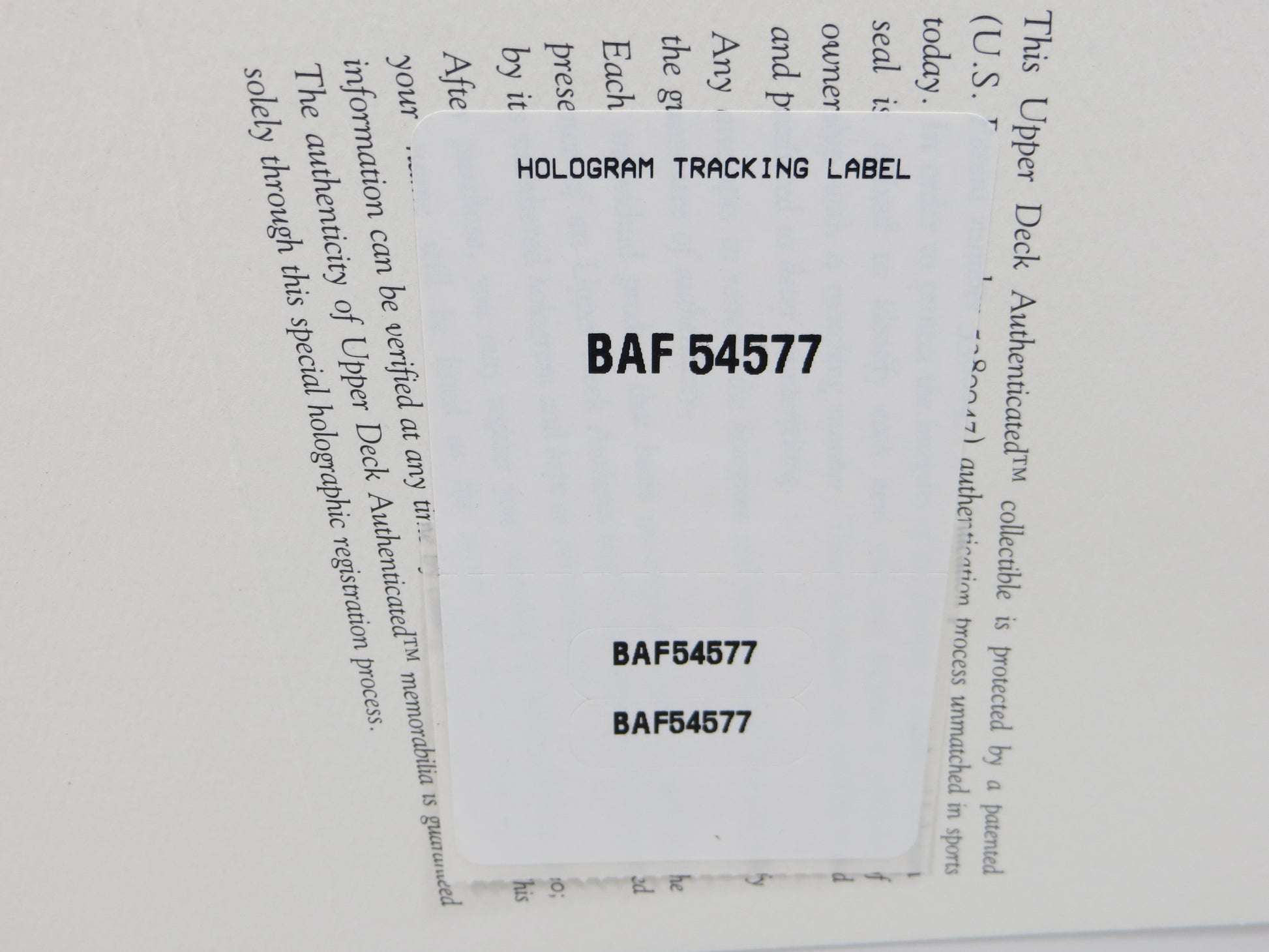This item comes with a numbered sticker from Upper Deck Authenticated (UDA).
