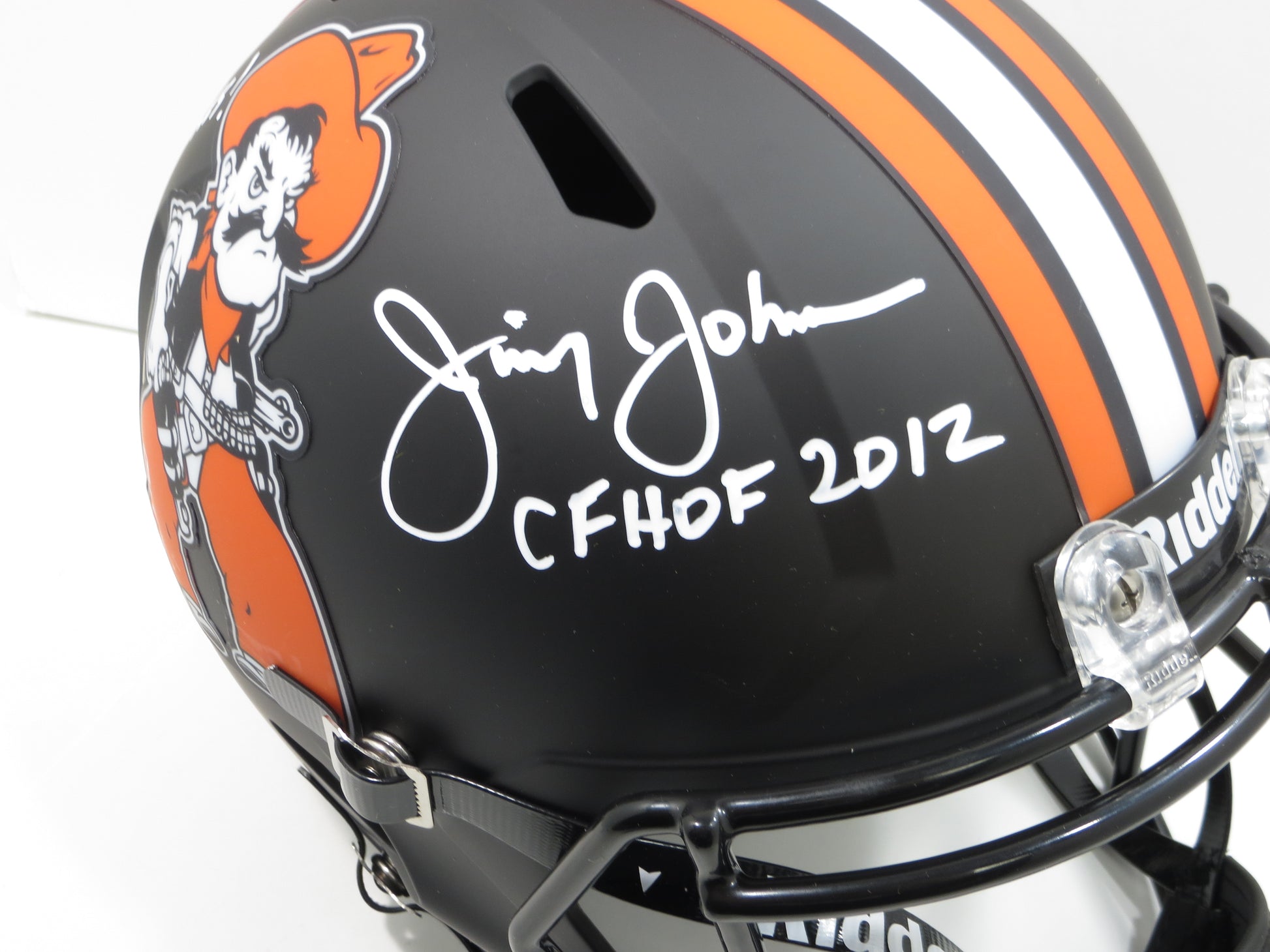 JIMMY JOHNSON SIGNED OK STATE COWBOYS SPEED HELMET w/INSCs Dallas Cowboys BAS