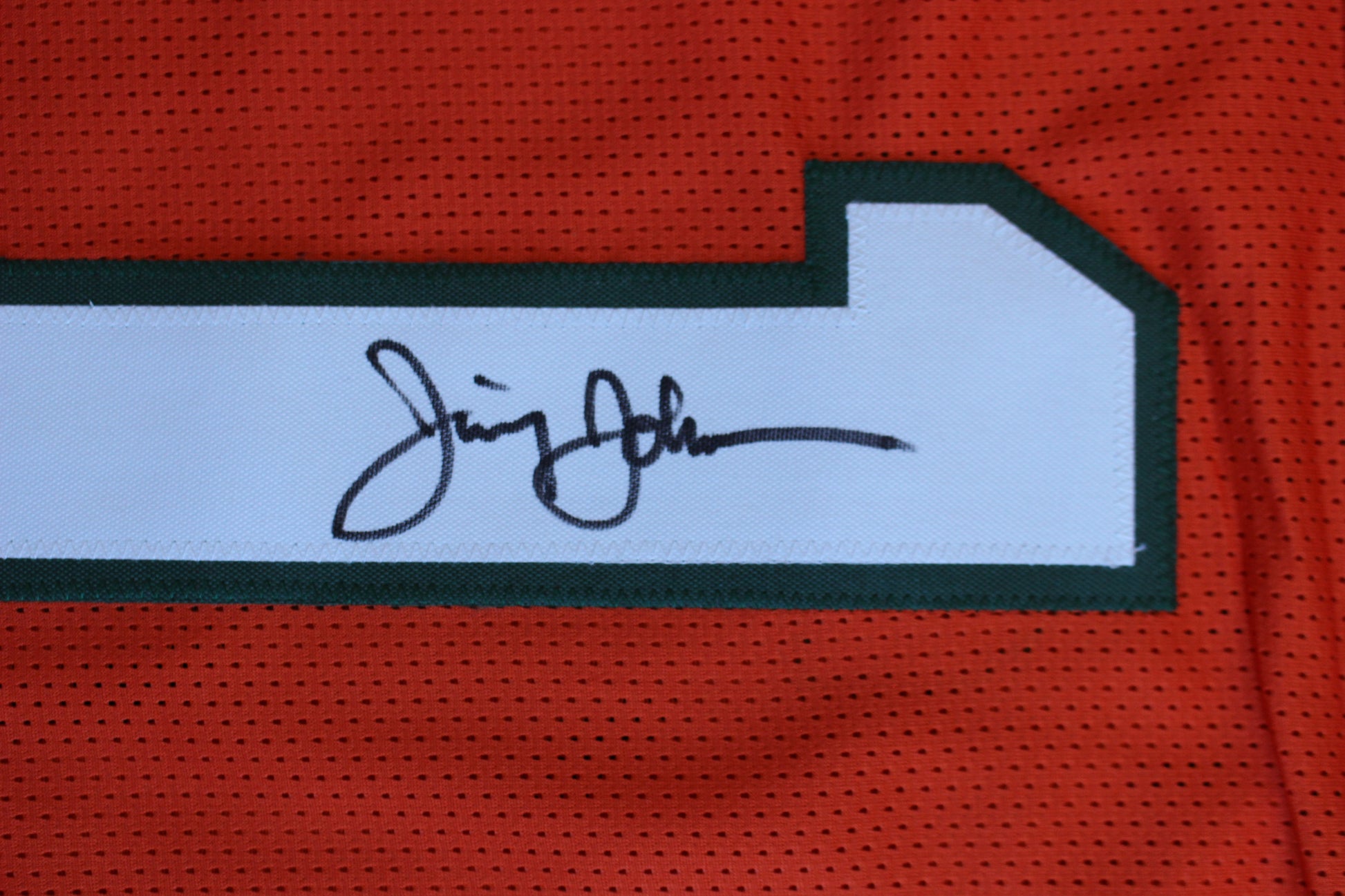 JIMMY JOHNSON SIGNED STAT FOOTBALL JERSEY MIAMI HURRICANES Cowboys BAS COA