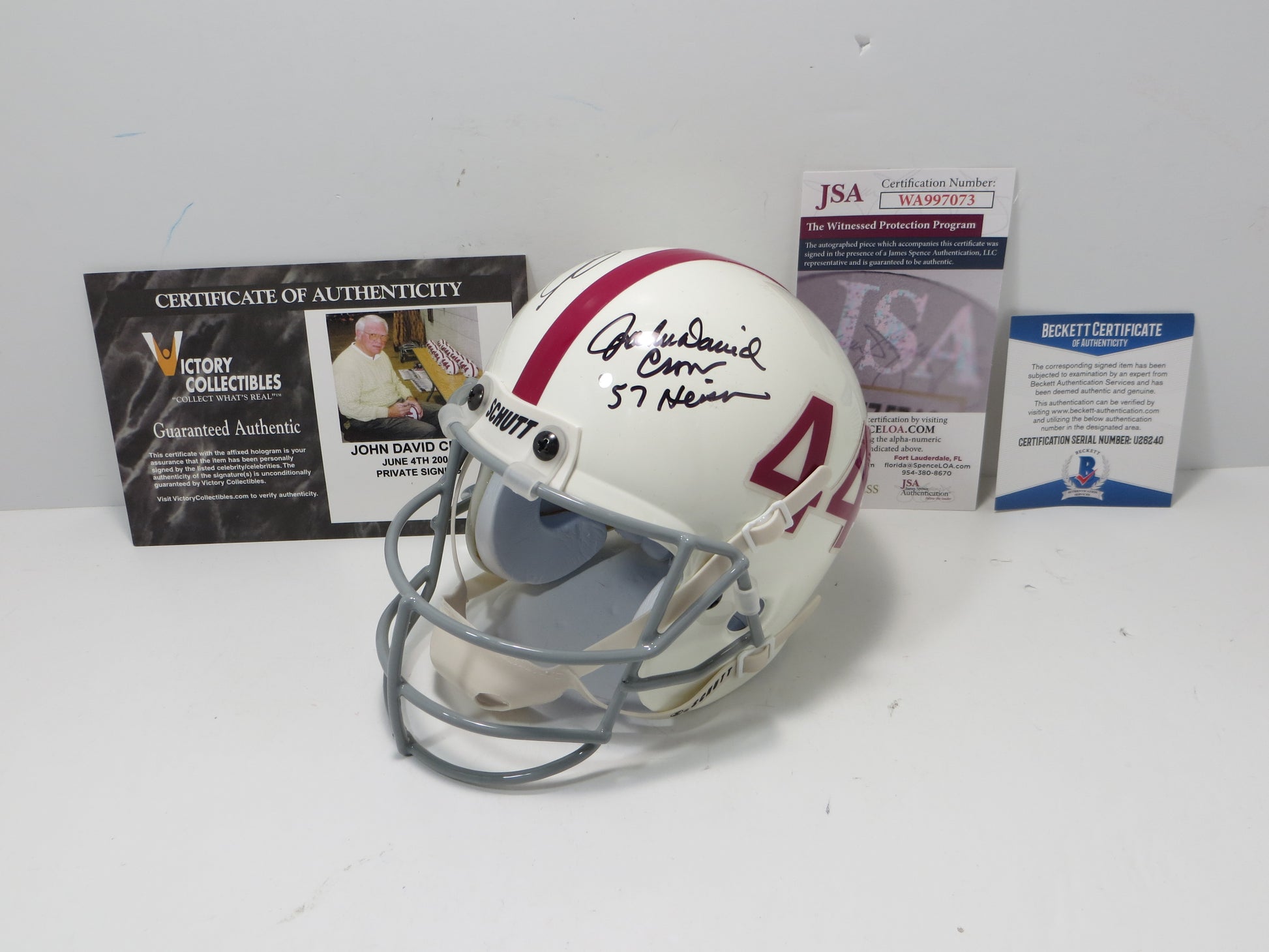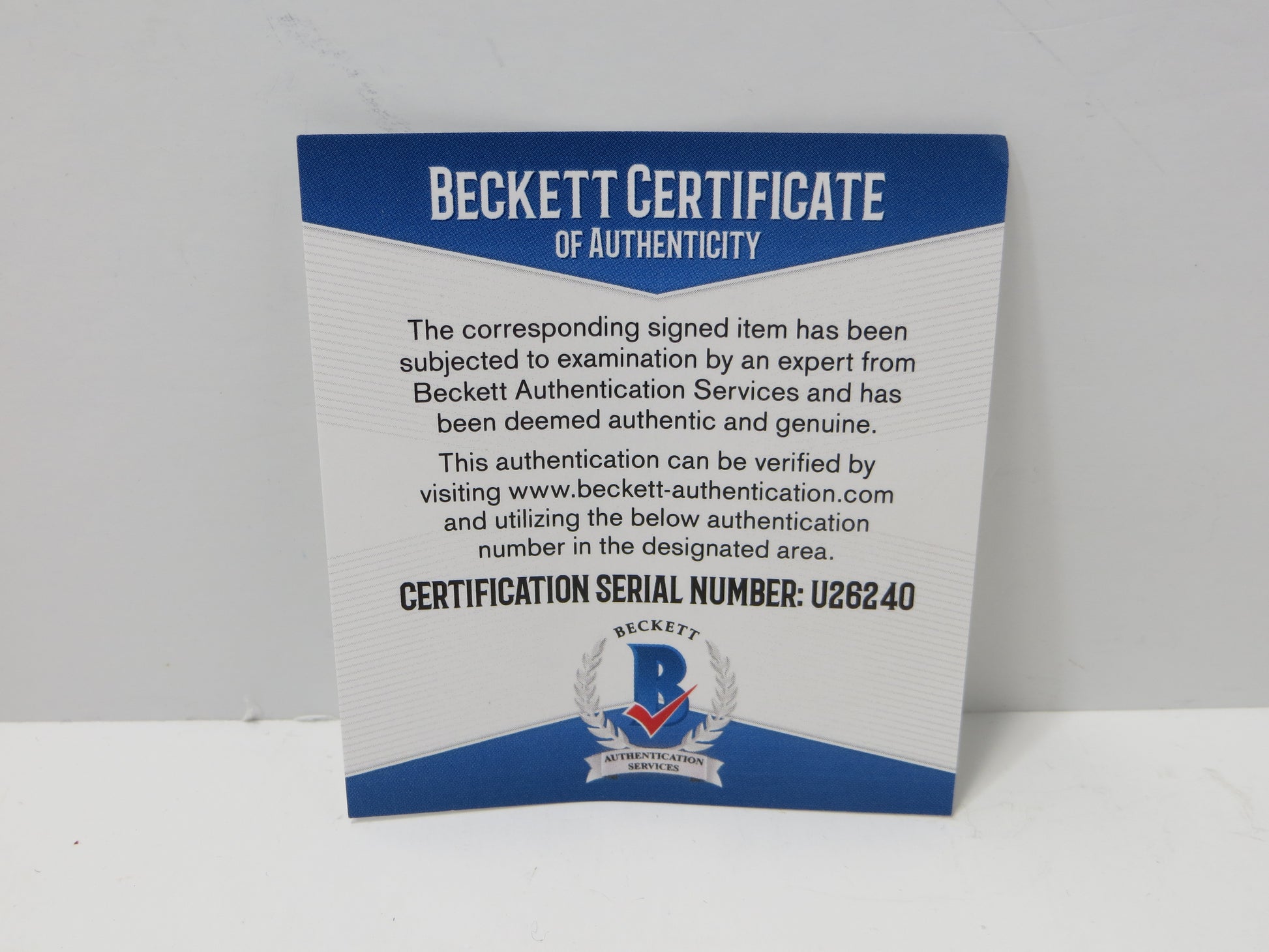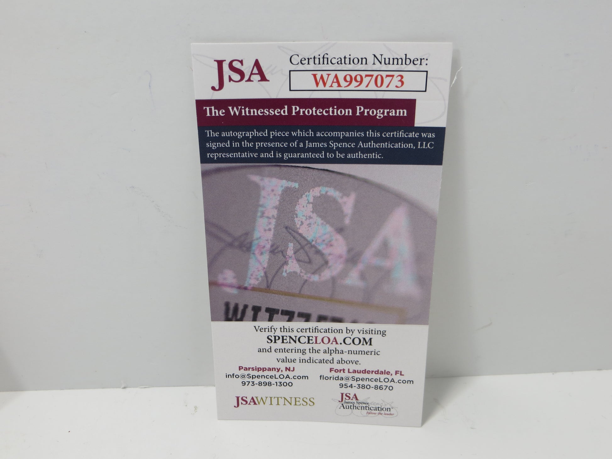 This item comes with a matching numbered sticker to a Certificate of Authenticity card from James Spence Authentication (JSA) and matching numbered sticker to a Certificate of Authenticity card from Beckett Authentication Services (BAS).
