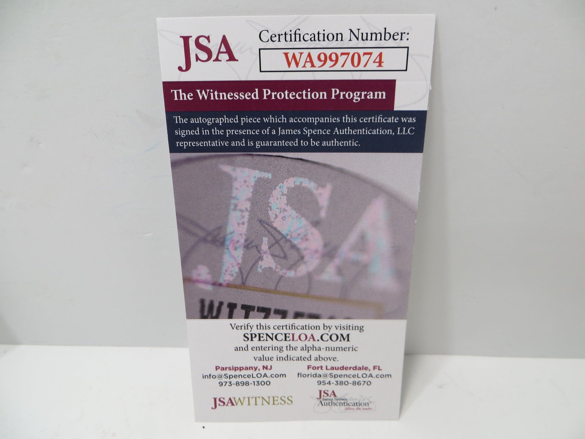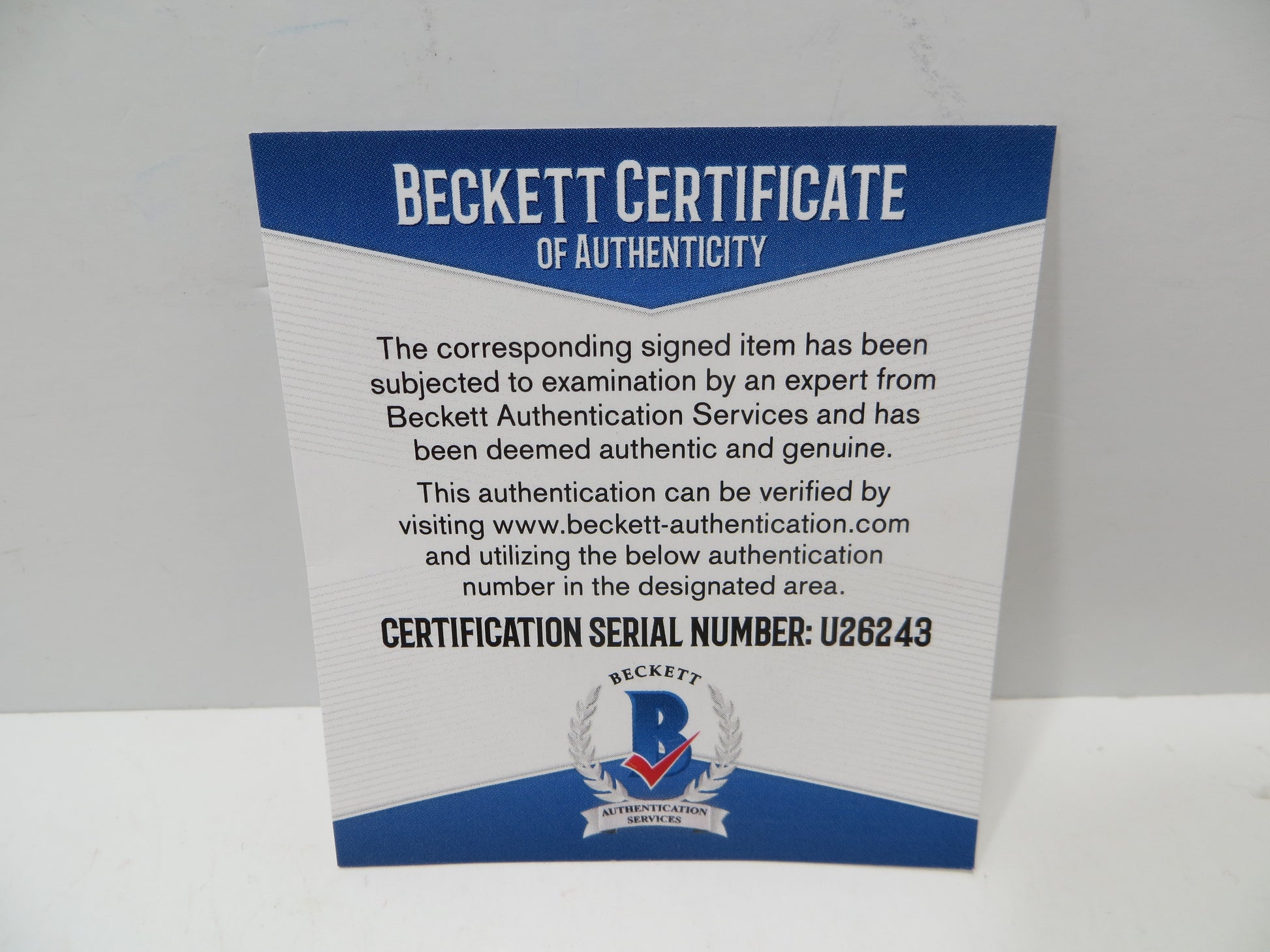This item comes with a matching numbered sticker to a Certificate of Authenticity card from James Spence Authentication (JSA) and matching numbered sticker to a Certificate of Authenticity card from Beckett Authentication Services (BAS).