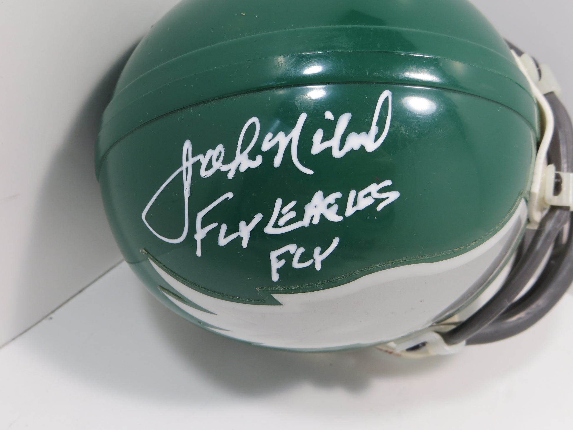 JOHN NILAND PHILADELPHIA EAGLES SIGNED RIDDELL MINI HELMET w/FLYEAGLESFLY JSA