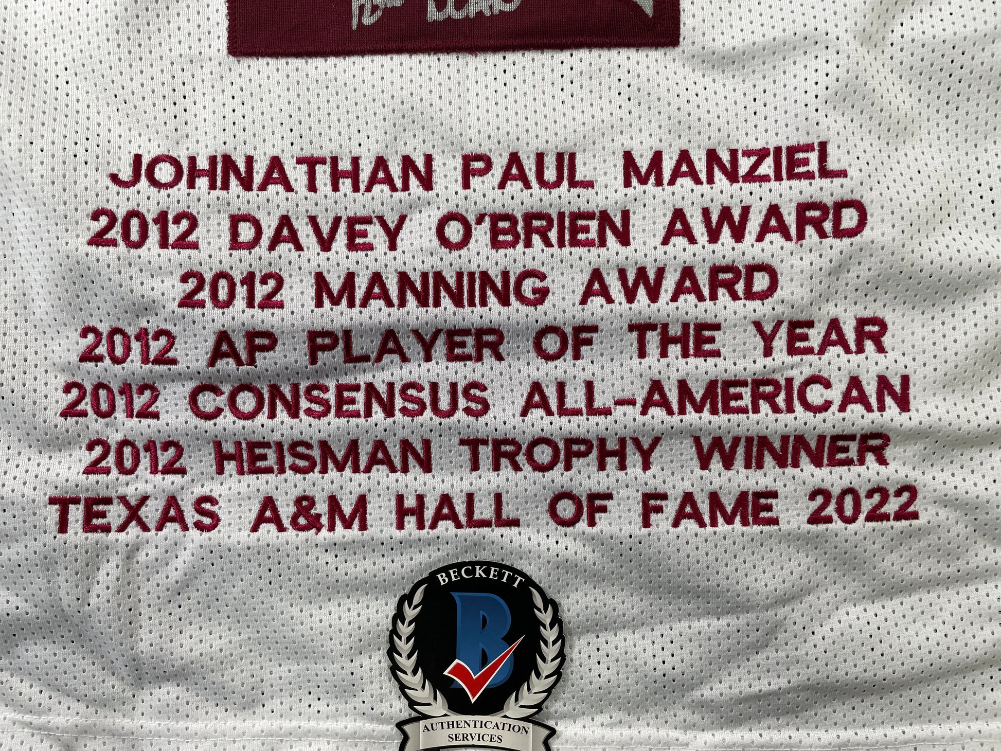 JOHNNY MANZIEL WHITE TEXAS A&M SIGNED STAT JERSEY w/"Home of the 12th Man" BAS