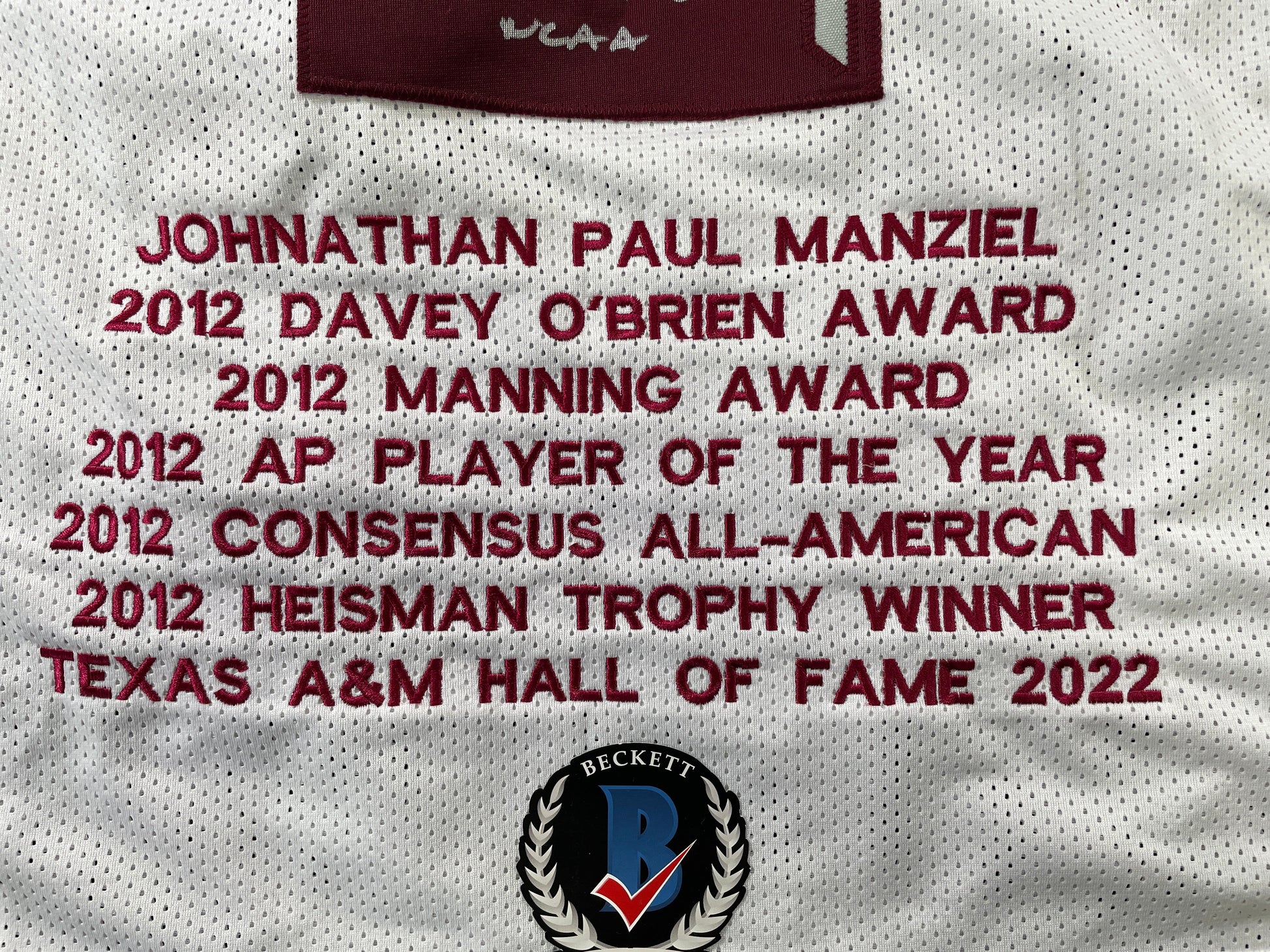 JOHNNY MANZIEL WHITE TEXAS A&M SIGNED STAT JERSEY w/" NCAA" BAS