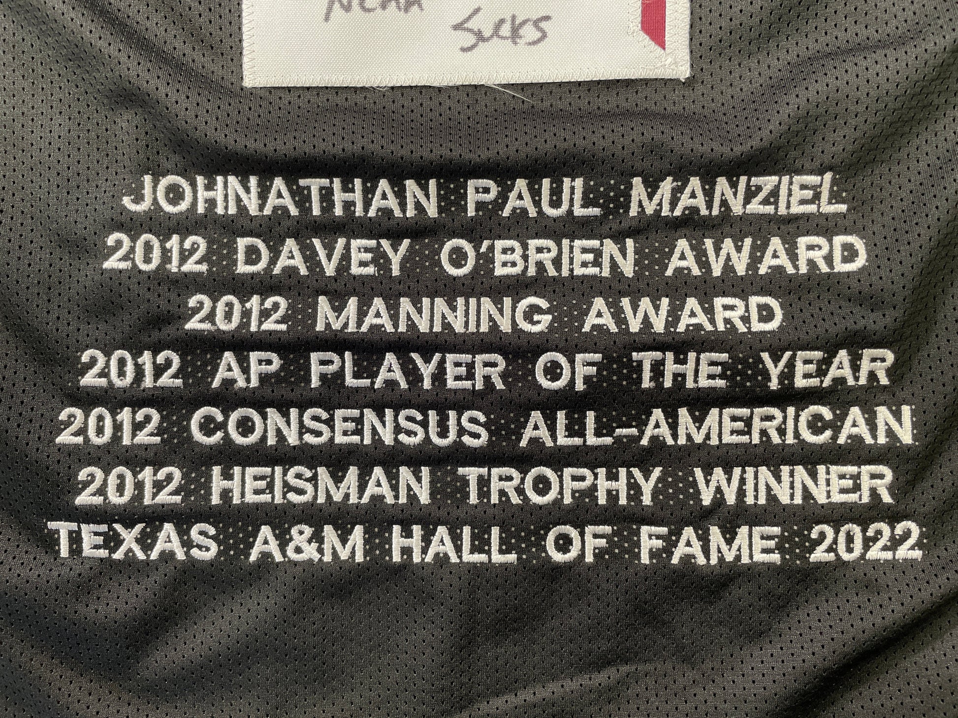 JOHNNY MANZIEL BLACK TEXAS A&M SIGNED STAT JERSEY w/"NCAA Sucks" JSA