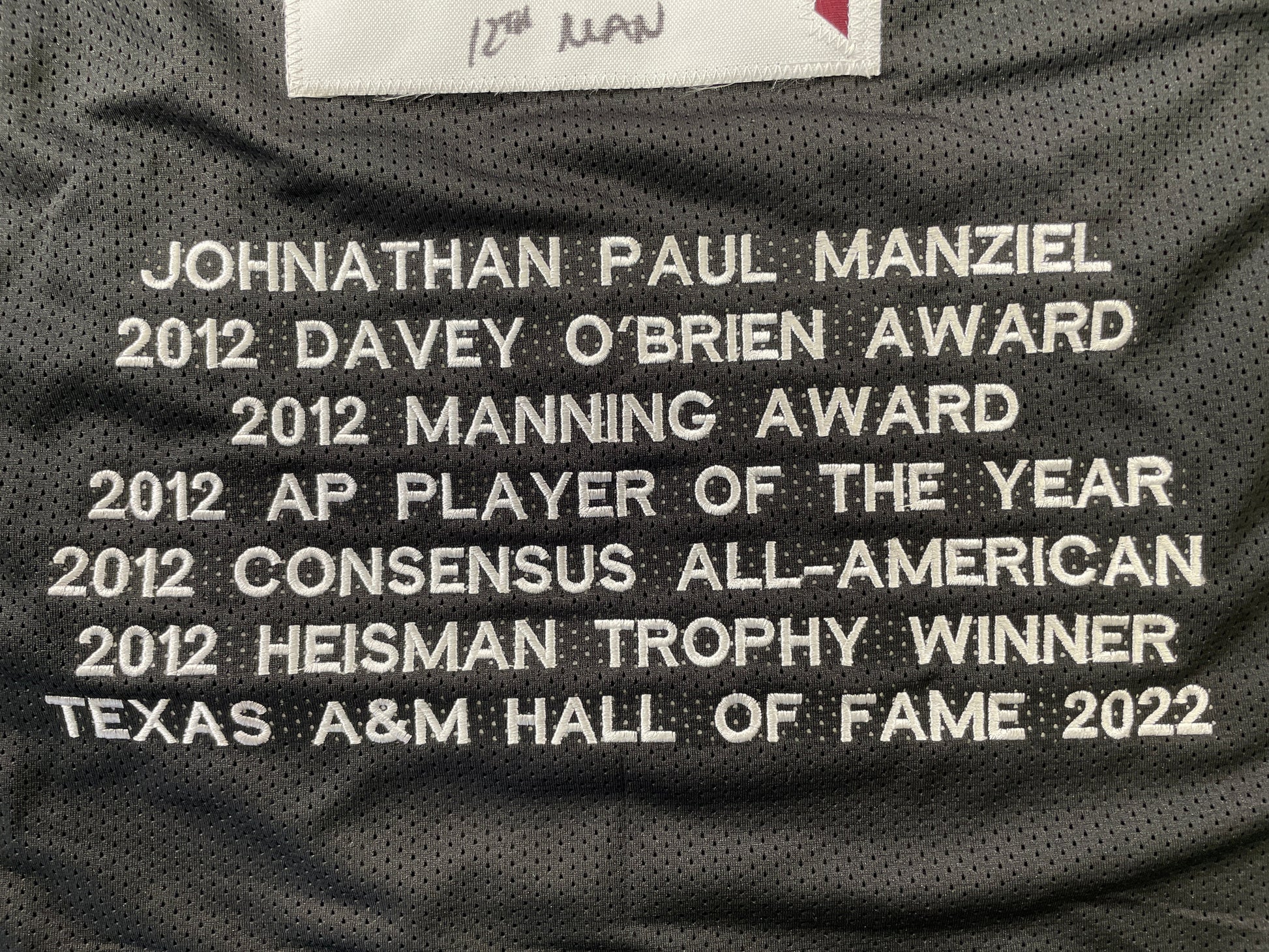 JOHNNY MANZIEL BLACK TEXAS A&M SIGNED STAT JERSEY w/"Home of the 12th Man" JSA