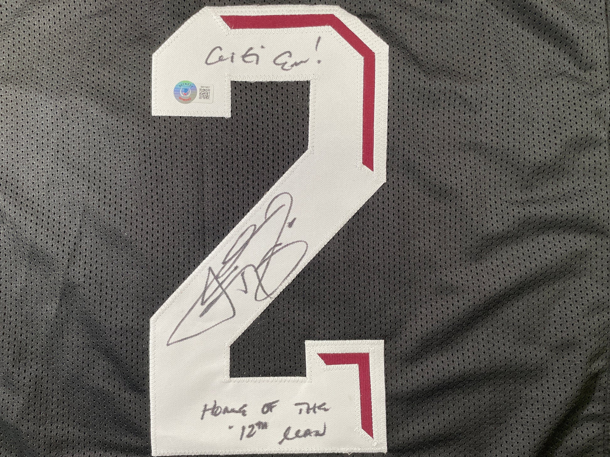 JOHNNY MANZIEL BLACK TEXAS A&M SIGNED JERSEY w/"Home of the 12th Man" BAS